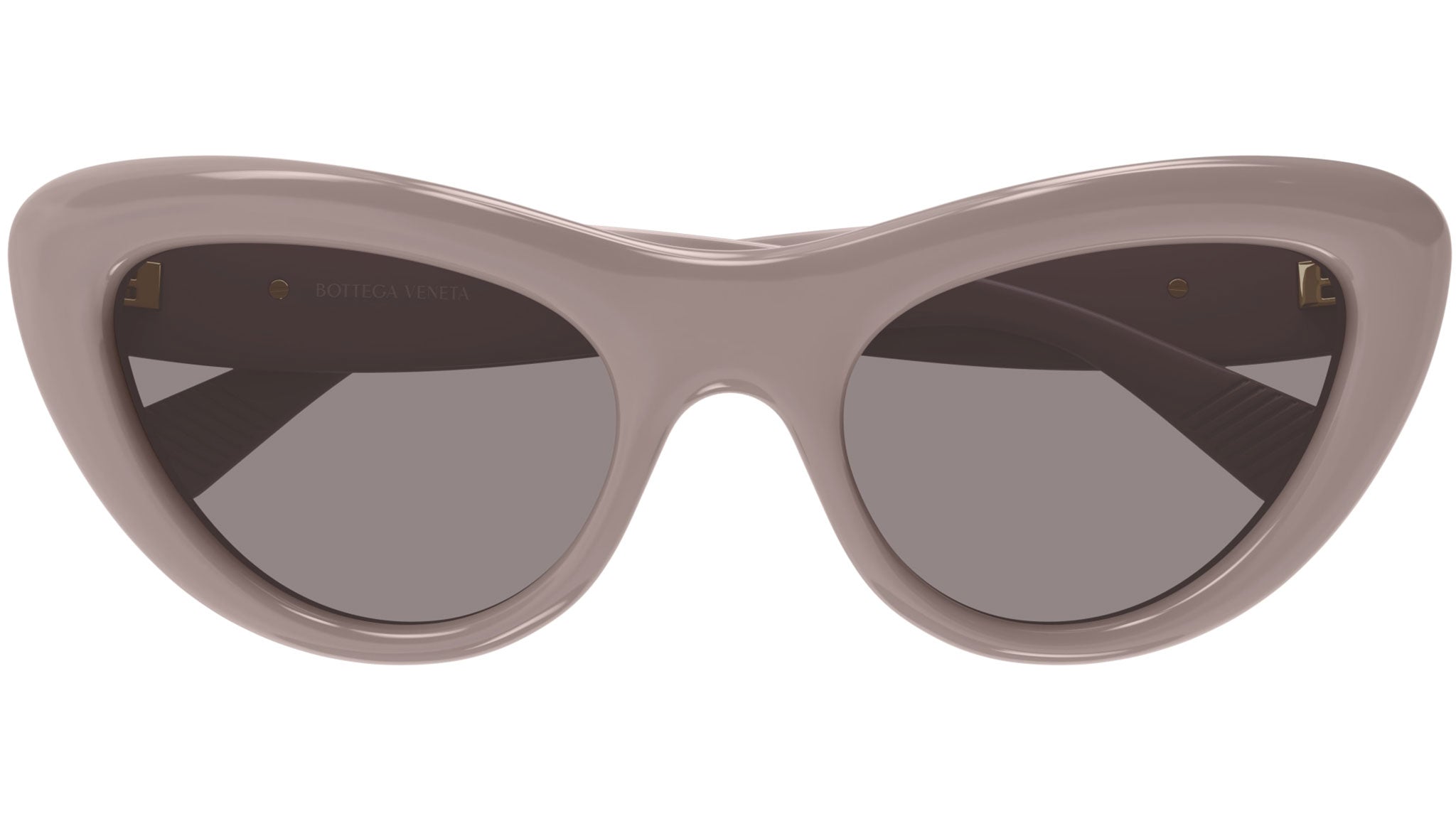 Occhiali da sole Bottega Veneta modello BV1282S linea New Classic codice colore 004 lilla dust solido lucido in acetato riciclato forma cat eye con lenti color viola grigio solido.