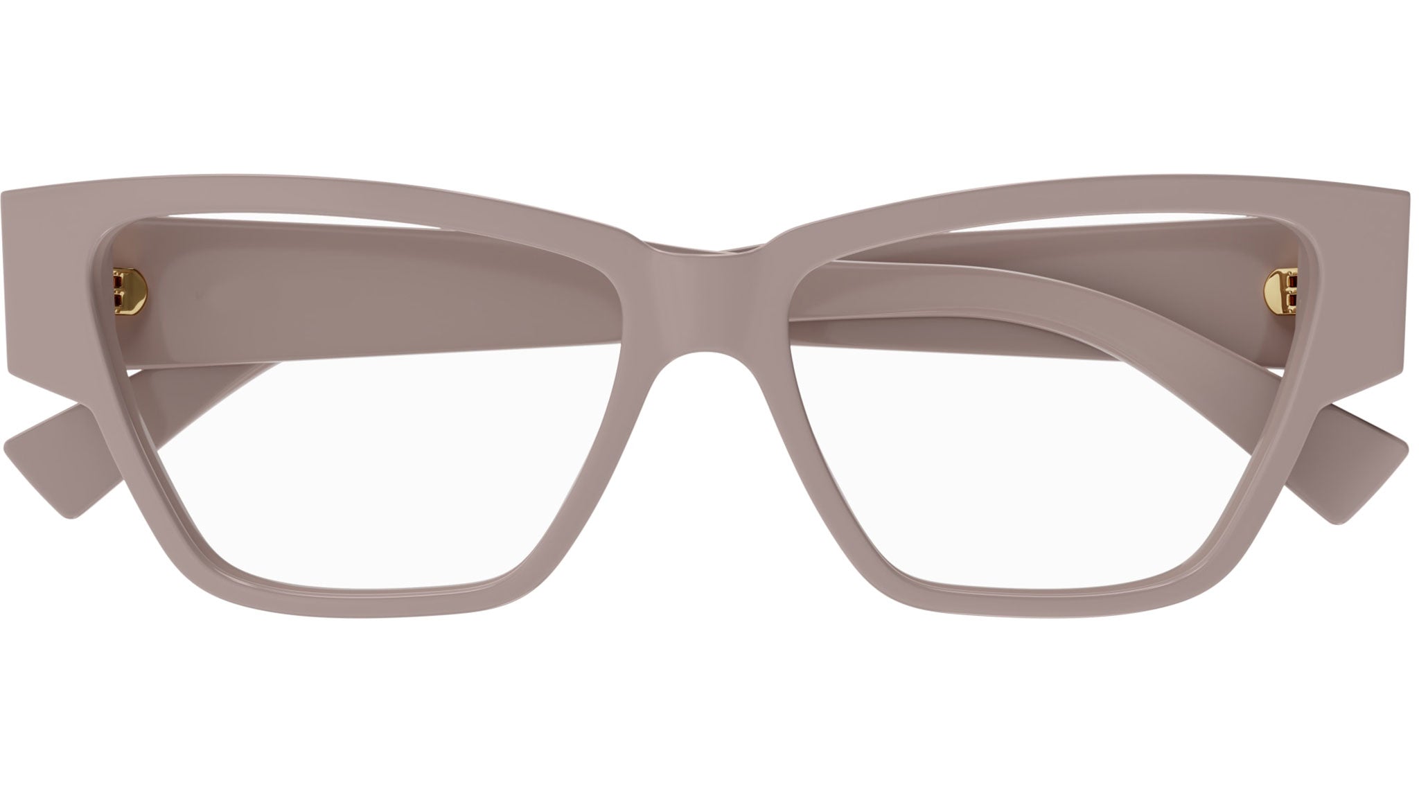Occhiali da vista Bottega Veneta modello BV1288O linea New Classic codice colore 004 lilla dust solido lucido in acetato riciclato forma cat eye con aste color rosa.