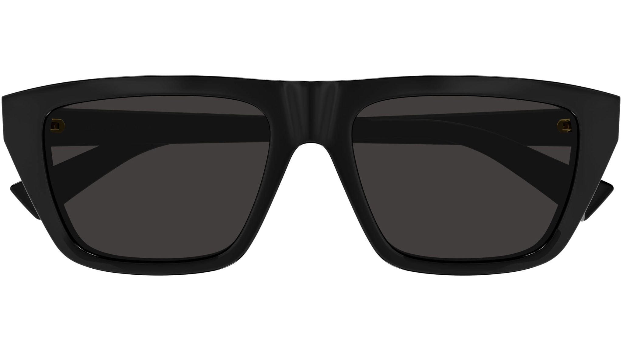 Occhiali da sole Bottega Veneta modello BV1291S linea New Classic codice colore 001 nero lucido tinta unita in acetato riciclato forma rectangle con lenti color grigio tinta unita.