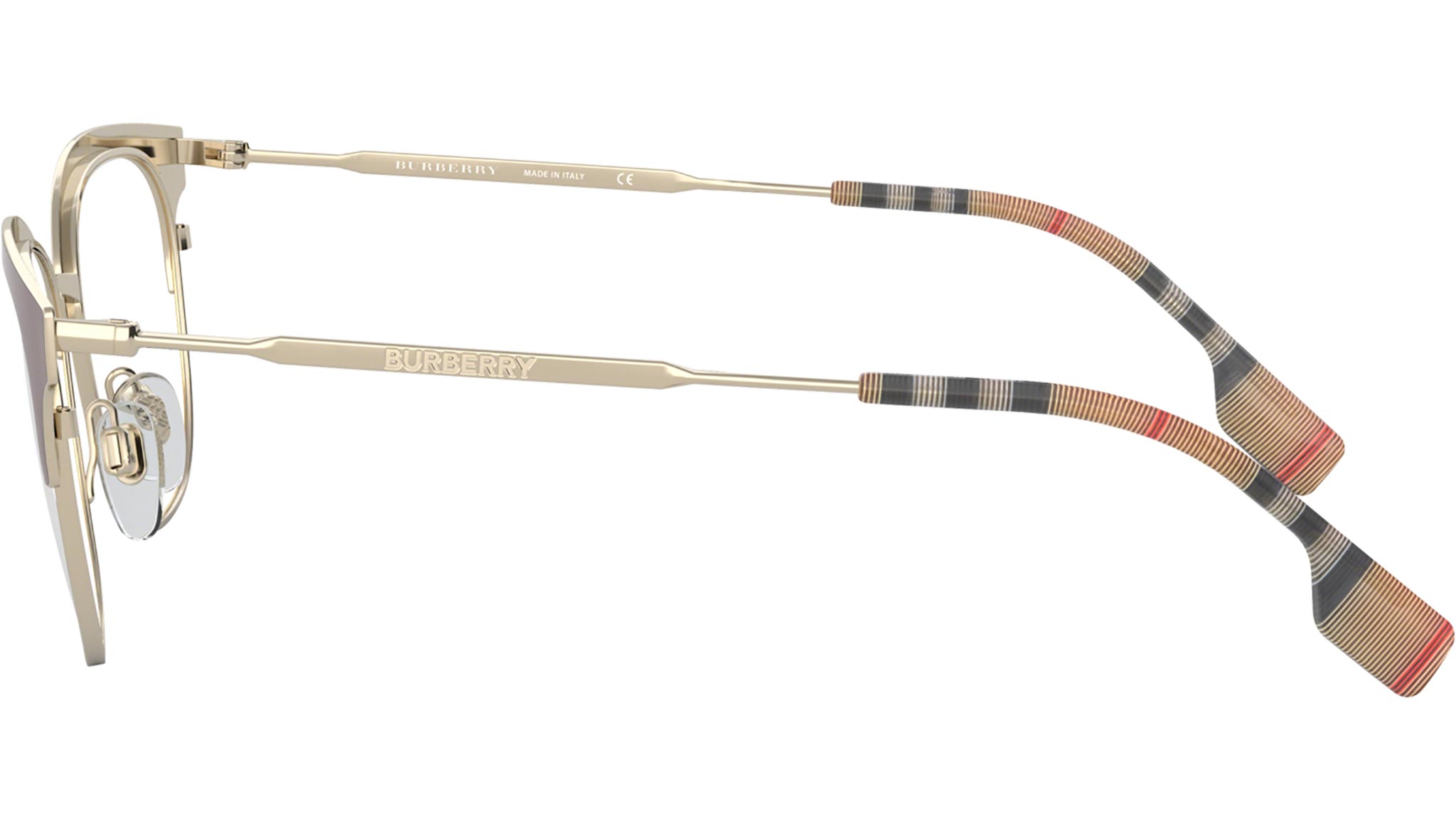Occhiali da vista Burberry linea B.Spirit modello BE1334 codice colore 1292 con montatura full rim in metallo oro chiaro / bordeaux e lenti demo. Scopri l'essenza del più tradizionale stile britannico con gli occhiali da vista firmati Burberry, un'accattivante collezione eyewear di montature originali, da uomo e da donna. Burberry offre una selezione accurata di silhouette classiche e montature contemporanee, adatte a soddisfare le più diverse preferenze. Dagli eleganti modelli full-rim a quelli semi-rimless, la varietà di montature in acetato o in metallo esprime tutta la raffinatezza del brand. Fin dalla sua fondazione nel 1856, Burberry è il simbolo globale del lusso britannico, rinomato per il suo ricco patrimonio e la passione per la vita all'aria aperta. Oggi, guidata dal direttore creativo Daniel Lee, Burberry continua a ridefinire il panorama della moda, interpretando lo stile britannico moderno, con i suoi codici distintivi e i suoi modelli iconici.