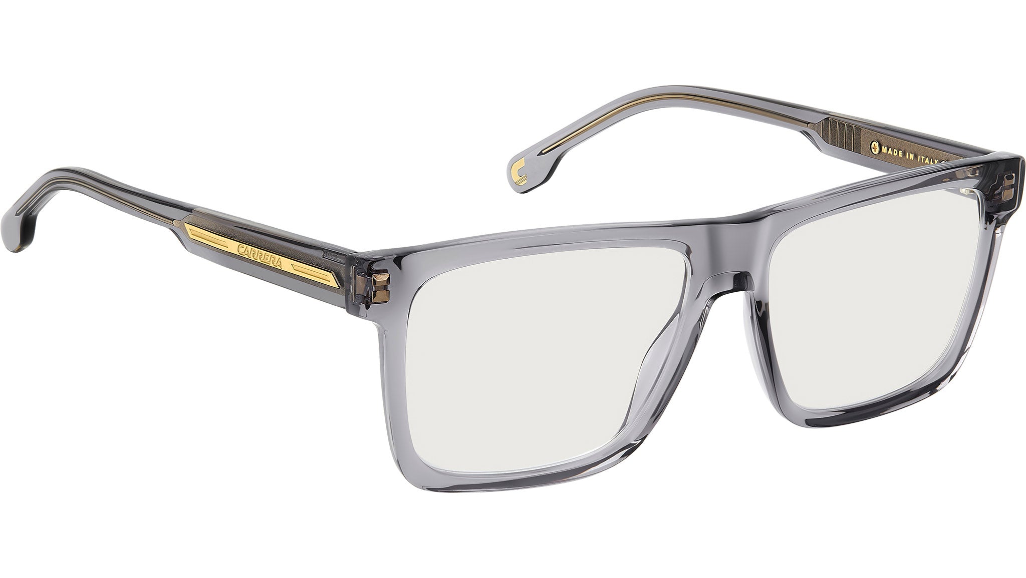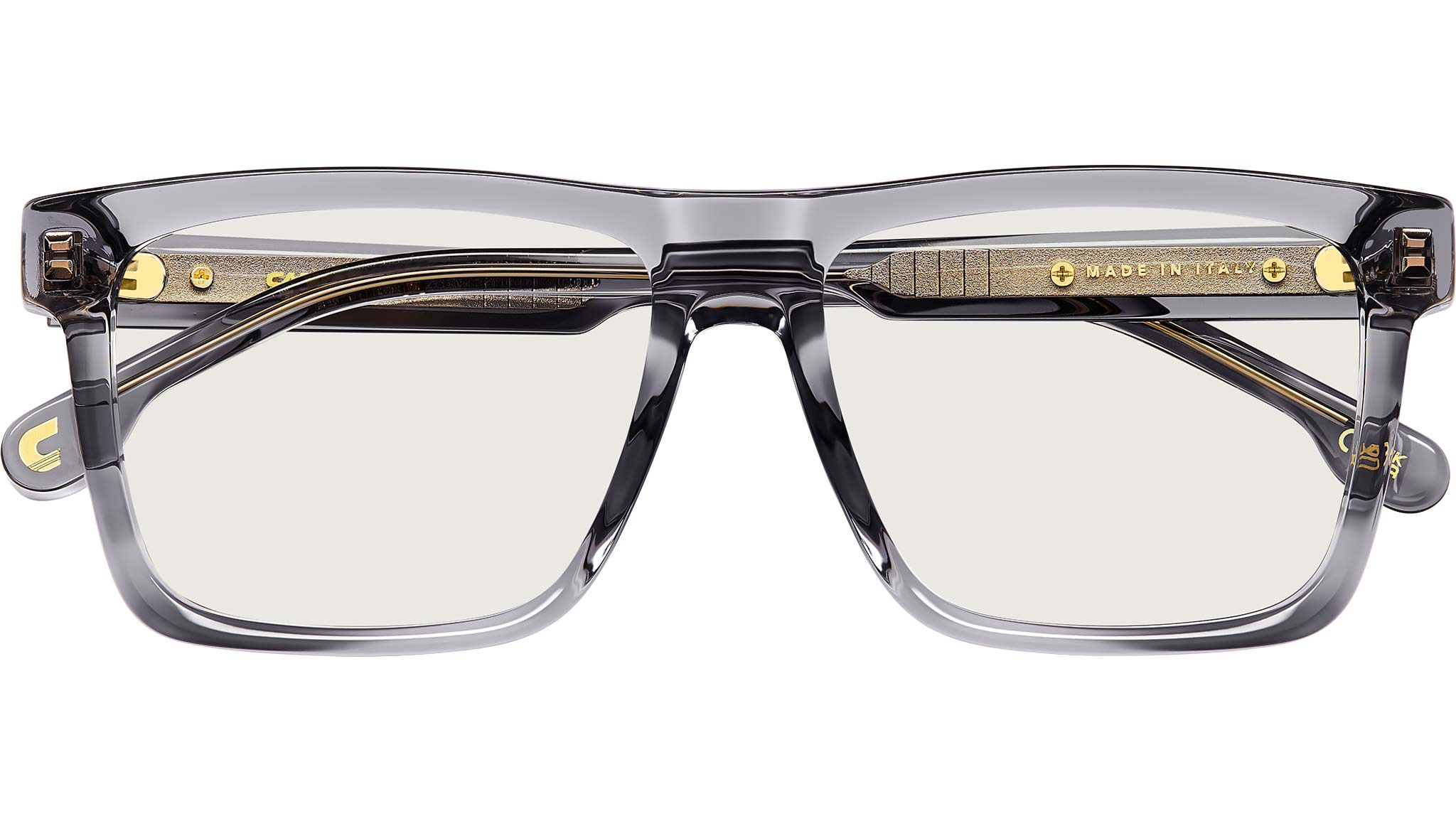 Occhiali da vista Carrera VICTORY C 06 KB7 uomo con montatura rettangolare in acetato grigio e lenti demo. Un design lineare ma tutt’altro che banale per un occhiale da vista Carrera realizzati in Italia. La montatura in acetato è rifinita nei dettagli, esempio di attenzione alla qualità. Il frontale rettangolare con flat top è versatile e assolutamente iconico, mentre le aste scolpite aggiungono carattere: da notare la placca in metallo con il logo esteso, incisiva e riconoscibile. Un modello da indossare sempre, per uno stile da manuale. Linea: Flag. Codice modello: 108932. Codice colore: KB7. Rivenditore autorizzato Carrera online. Gli occhiali vengono consegnati con custodia e accessori originali e sono coperti dalla garanzia ufficiale di 12 mesi del produttore.