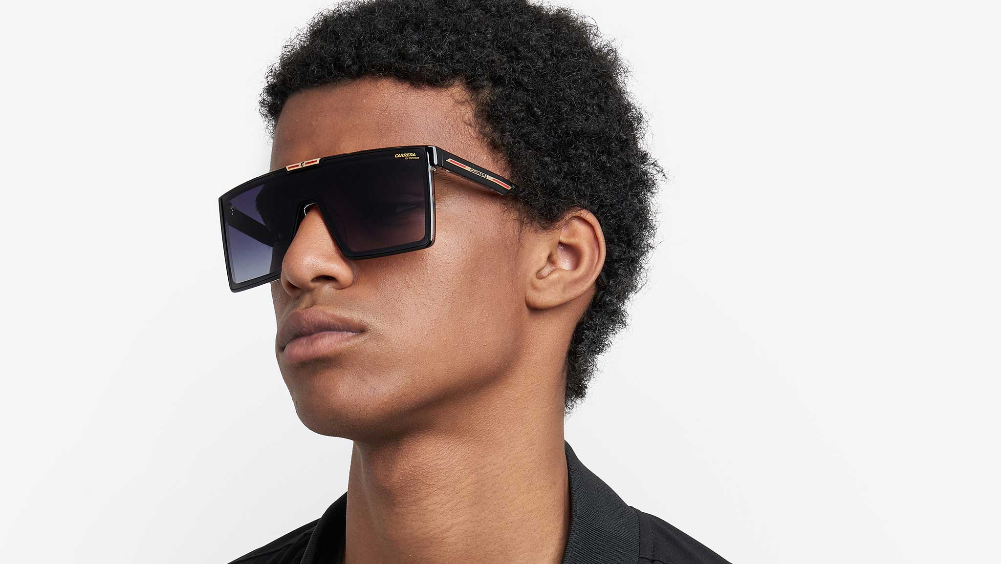 Occhiali da sole Carrera VICTORY C 07/S 7C5 9O uomo con montatura mascherina in poliammide ecologica cristallo nero e lenti demo. Carrera trasforma gli occhiali da sole in una vera dichiarazione di stile. Questo modello è realizzato in Italia, come attesta la dicitura all’interno dell’asta, prova dell’impegno Carrera per la qualità. Il frontale è una maschera dal sapore futuristico, sovrastata dalla placca con il logo “C”, davvero evocativa nella sua forma orizzontale. Il dettaglio metallico con la flag Carrera ritorna anche sulle aste scolpite, a completare questo accessorio ineguagliabile. Linea: Flag. Codice modello: 207559. Codice colore: 7C5 9O. Rivenditore autorizzato Carrera online. Gli occhiali vengono consegnati con custodia e accessori originali e sono coperti dalla garanzia ufficiale di 12 mesi del produttore.