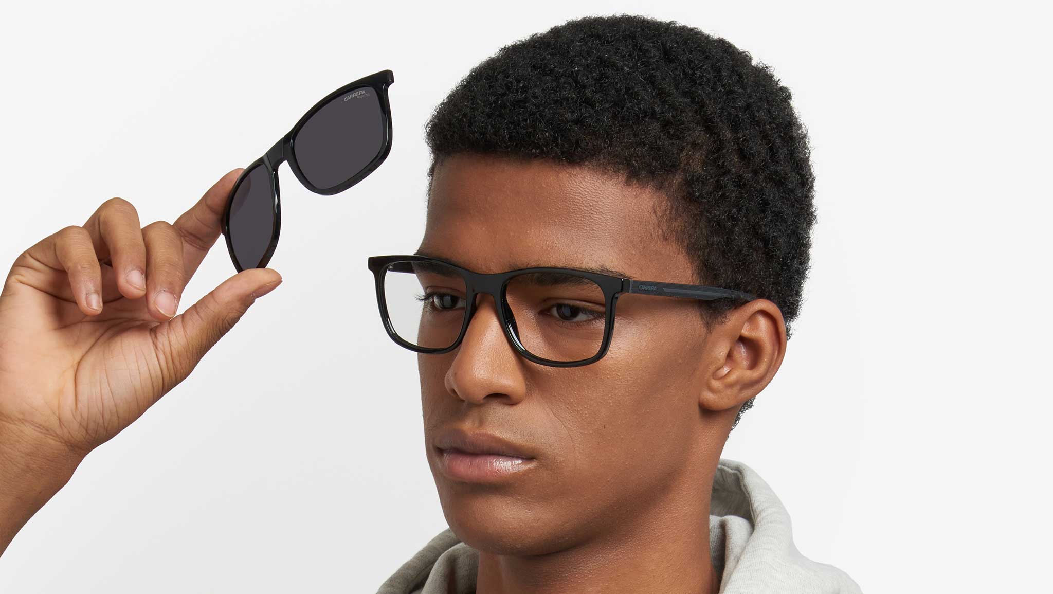 Occhiali da vista Carrera CA 8918/C 08A uomo con montatura rettangolare in poliammide ecologica nero grigio e lenti demo. Un occhiale da vista Carrera che fonde performance e stile. Il frontale rettangolare è impeccabile - disponibile in versione bi-color. Si trasforma in un attimo, sovrapponendo le lenti da sole polarizzate clip-on in dotazione. Queste ultime sono pieghevoli, per averle sempre con sé quando le condizioni di luce lo richiedono. Le aste sono texturizzate, con inserti gommati a contrasto e logo in rilievo, in linea con il carattere dinamico del modello. Linea: Sport. Codice modello: 109495. Codice colore: 08A. Rivenditore autorizzato Carrera online. Gli occhiali vengono consegnati con custodia e accessori originali e sono coperti dalla garanzia ufficiale di 12 mesi del produttore.