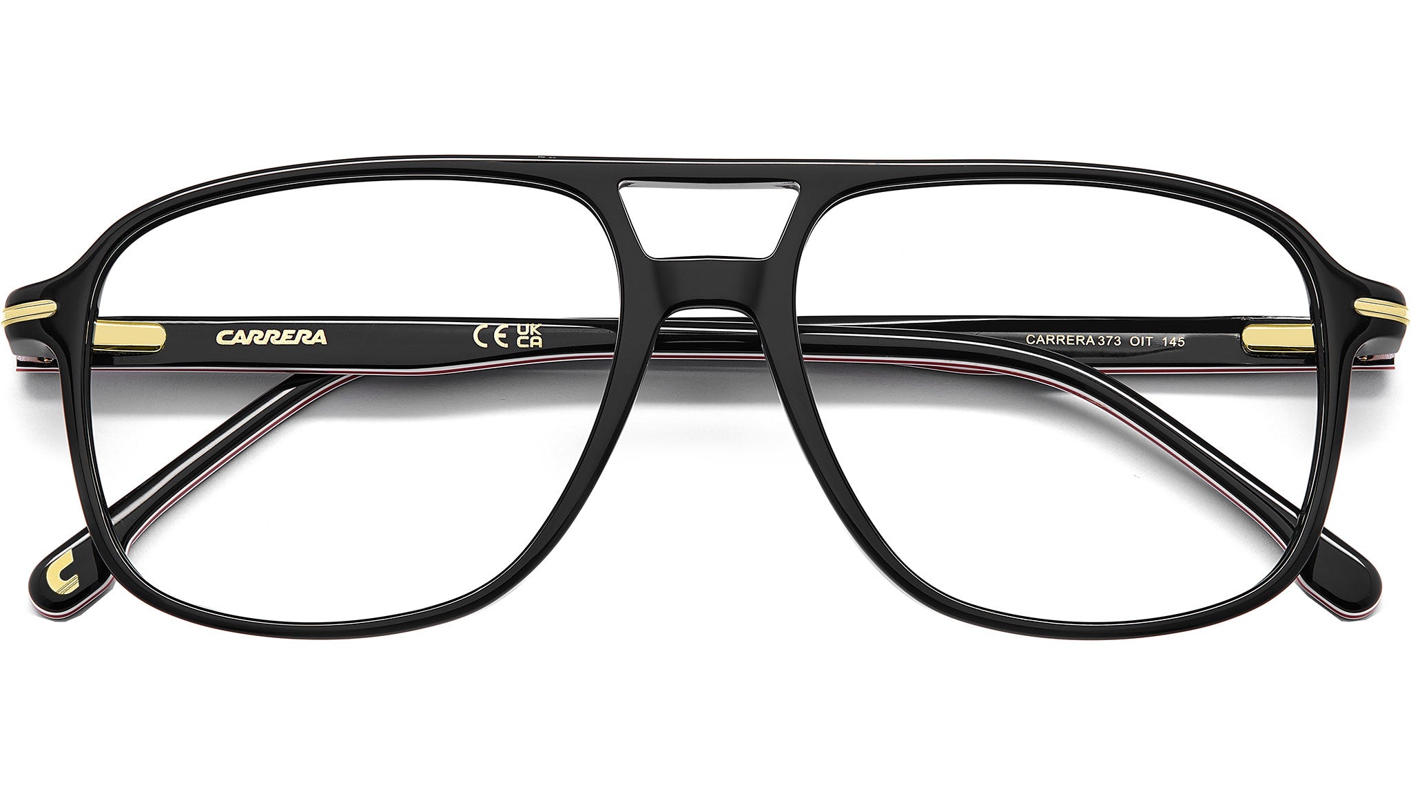 Occhiali da vista Carrera 373 OIT uomo con montatura rettangolare in acetato nero rosso e lenti demo. Questi occhiali da vista Carrera sono evergreen di alto livello. Il frontale navigator con doppio ponte ha una forma notevole, compensata da profili slim. In acetato, con dettaglio metallico tra frontale e aste – un rimando al logo "C". Scegli la tua proposta colore: con trattamento multistrato nei colori Carrera, trasparente con aste a vista o con inedite sfumature sul frontale. Linea: Signature. Codice modello: 110197. Codice colore: OIT. Rivenditore autorizzato Carrera online. Gli occhiali vengono consegnati con custodia e accessori originali e sono coperti dalla garanzia ufficiale di 12 mesi del produttore.