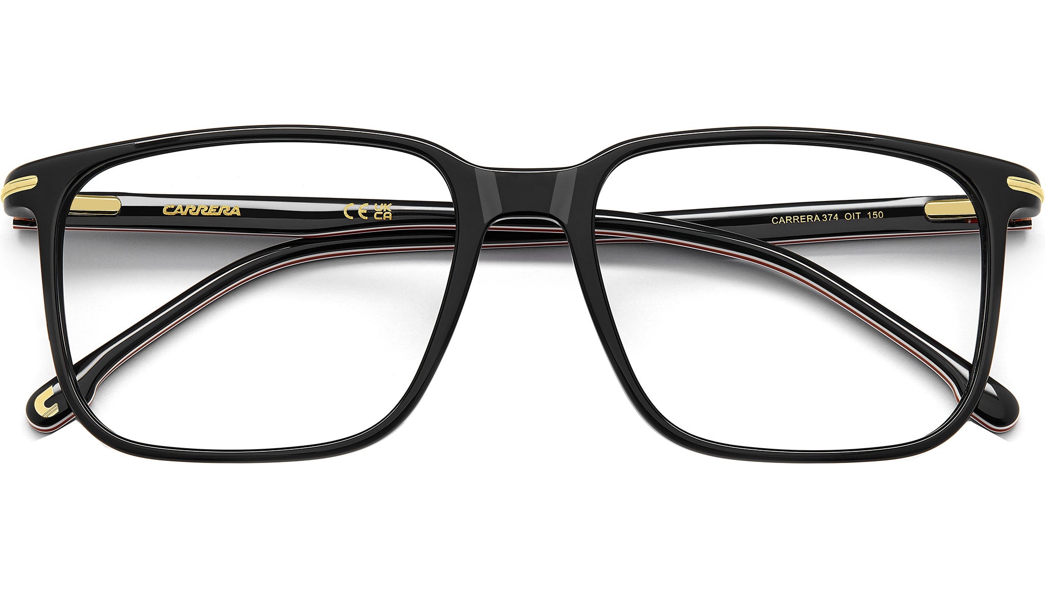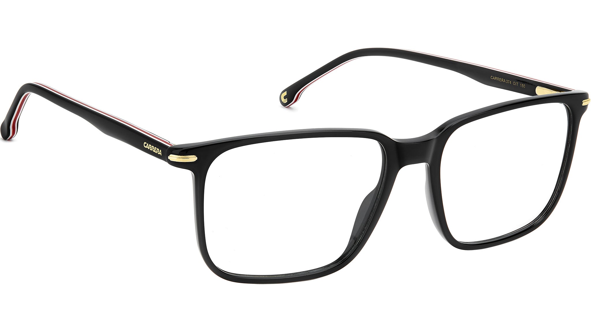 Occhiali da vista Carrera 374 OIT uomo con montatura rettangolare in acetato nero rosso e lenti demo. Occhiali da vista Carrera dal design intramontabile. La montatura ha linee slim e comode, facili da indossare e da abbinare. Gli inserti che dal frontale proseguono sulle aste sono un omaggio alla C: un accento metallico dal feeling moderno. In acetato leggero, il modello arriva in due diversi calibri. Linea: Signature. Codice modello: 110200. Codice colore: OIT. Rivenditore autorizzato Carrera online. Gli occhiali vengono consegnati con custodia e accessori originali e sono coperti dalla garanzia ufficiale di 12 mesi del produttore.