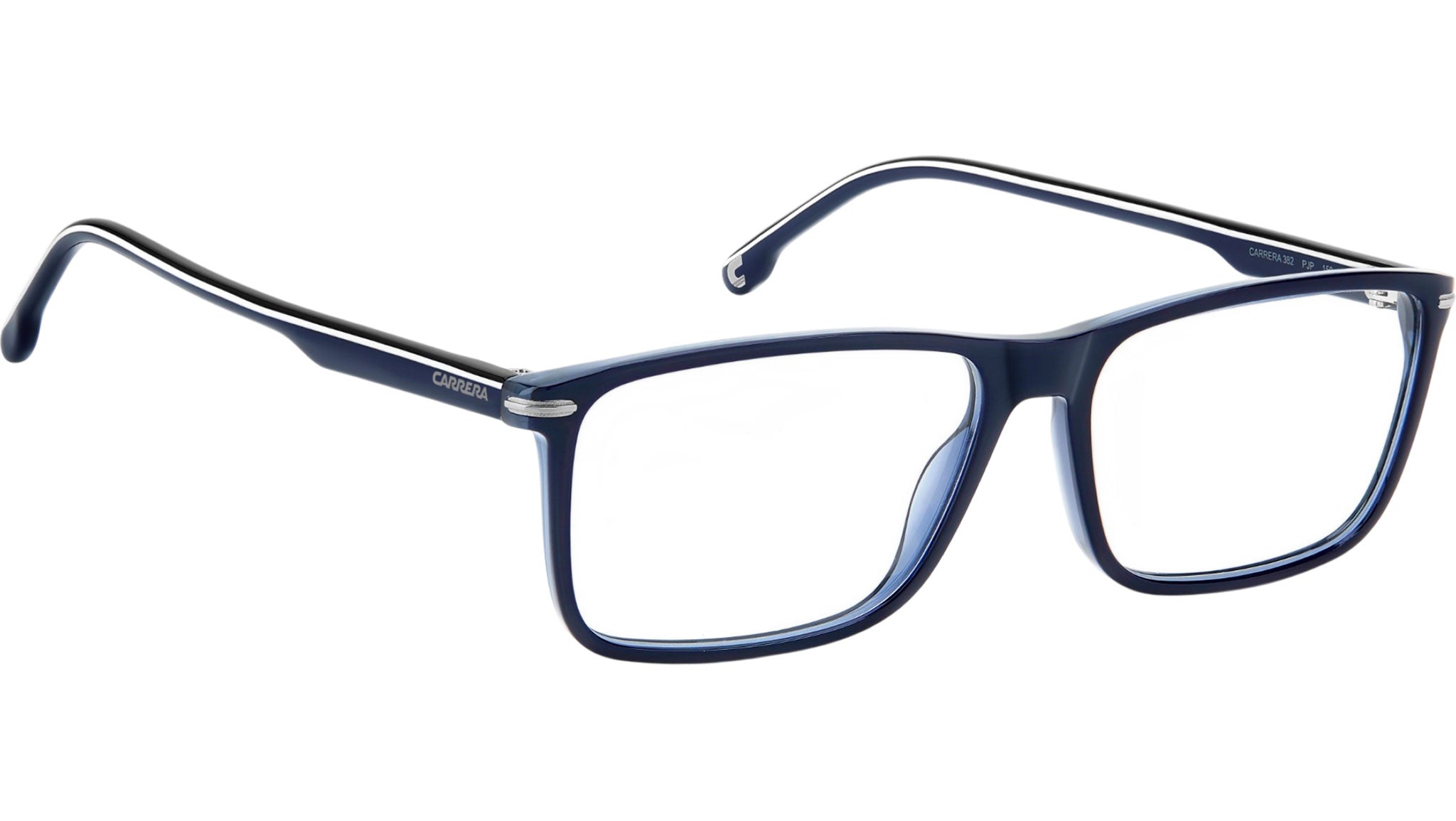 Occhiali da vista Carrera 382 PJP uomo con montatura rettangolare in acetato blu e lenti demo. Linea: Signature. Codice modello: 111640. Codice colore: PJP. Rivenditore autorizzato Carrera online. Gli occhiali vengono consegnati con custodia e accessori originali e sono coperti dalla garanzia ufficiale di 12 mesi del produttore.