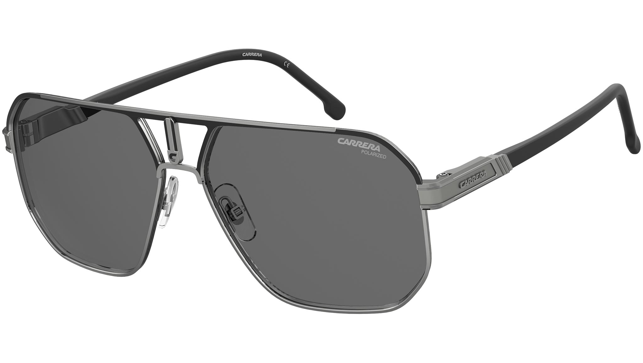 Occhiali da sole Carrera modello 1062/S colore RZZ M9 matte black dark ruthenium. Sono già un pezzo da collezione questi occhiali da sole carichi di elementi tipici Carrera. La placca con il logo “C” si impone al centro del frontale in metallo, sicuramente incisivo nel suo profilo navigator con doppio ponte. Le aste in metallo sono firmate dal logo Carrera in rilievo e completate da terminali lunghi in acetato. È possibile scegliere tra diverse combinazioni cromatiche, anche con frontale bi-color, lenti polarizzate e ultrapolar.