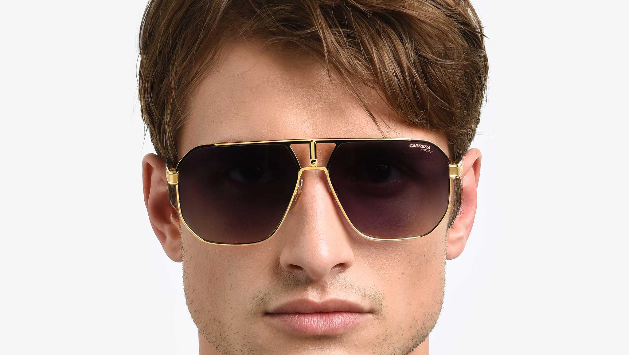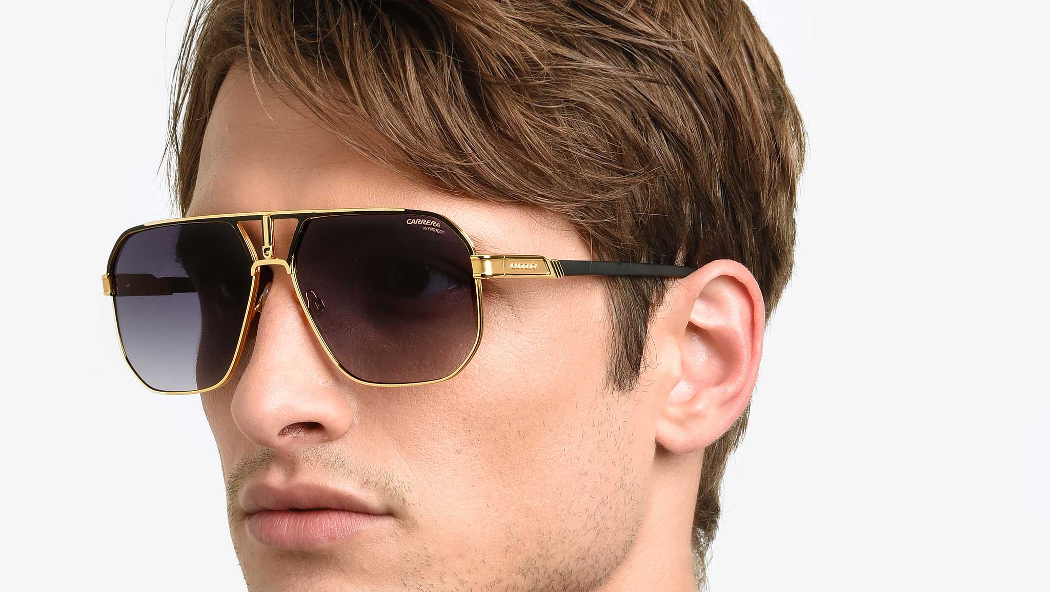 Occhiali da sole Carrera modello 1062/S colore SAO 9O matte black gold black. Sono già un pezzo da collezione questi occhiali da sole carichi di elementi tipici Carrera. La placca con il logo “C” si impone al centro del frontale in metallo, sicuramente incisivo nel suo profilo navigator con doppio ponte. Le aste in metallo sono firmate dal logo Carrera in rilievo e completate da terminali lunghi in acetato. È possibile scegliere tra diverse combinazioni cromatiche, anche con frontale bi-color, lenti polarizzate e ultrapolar.