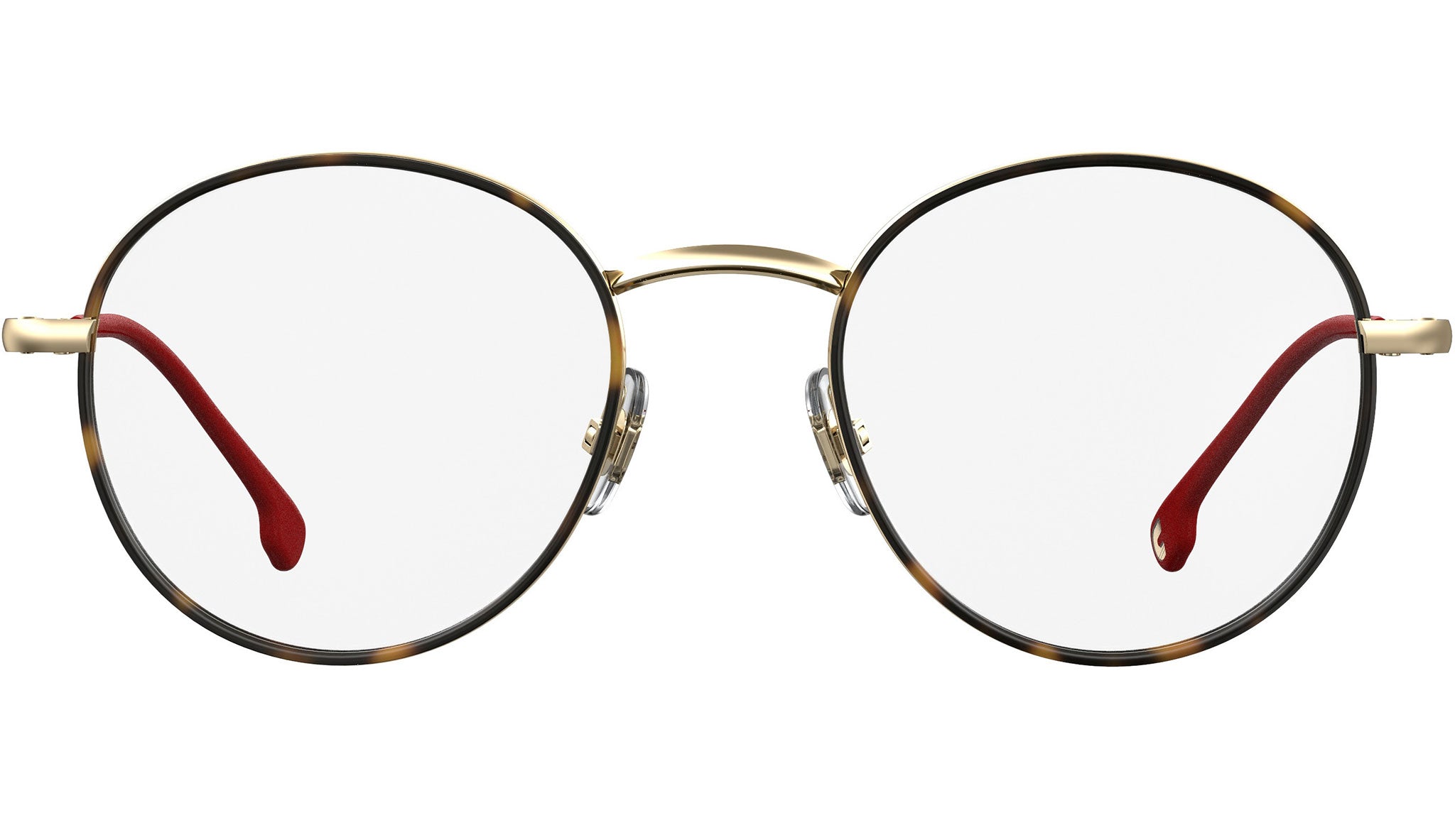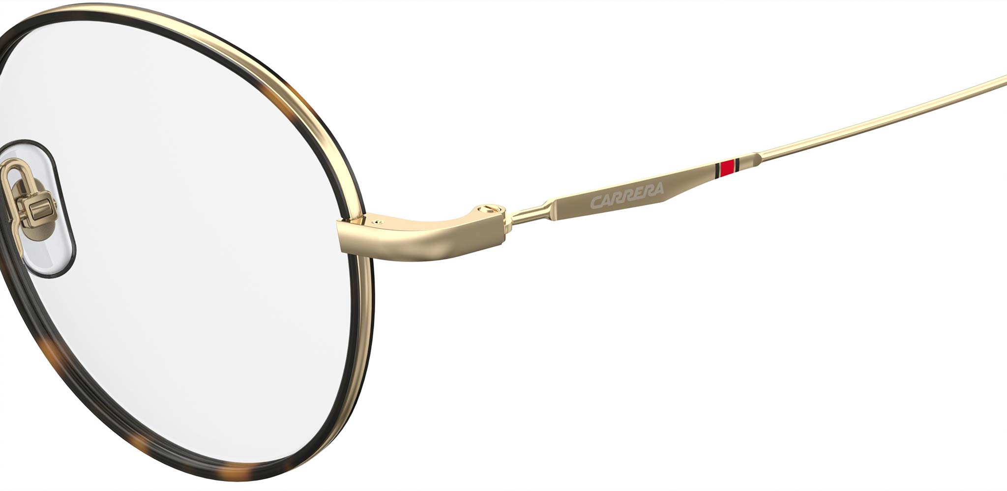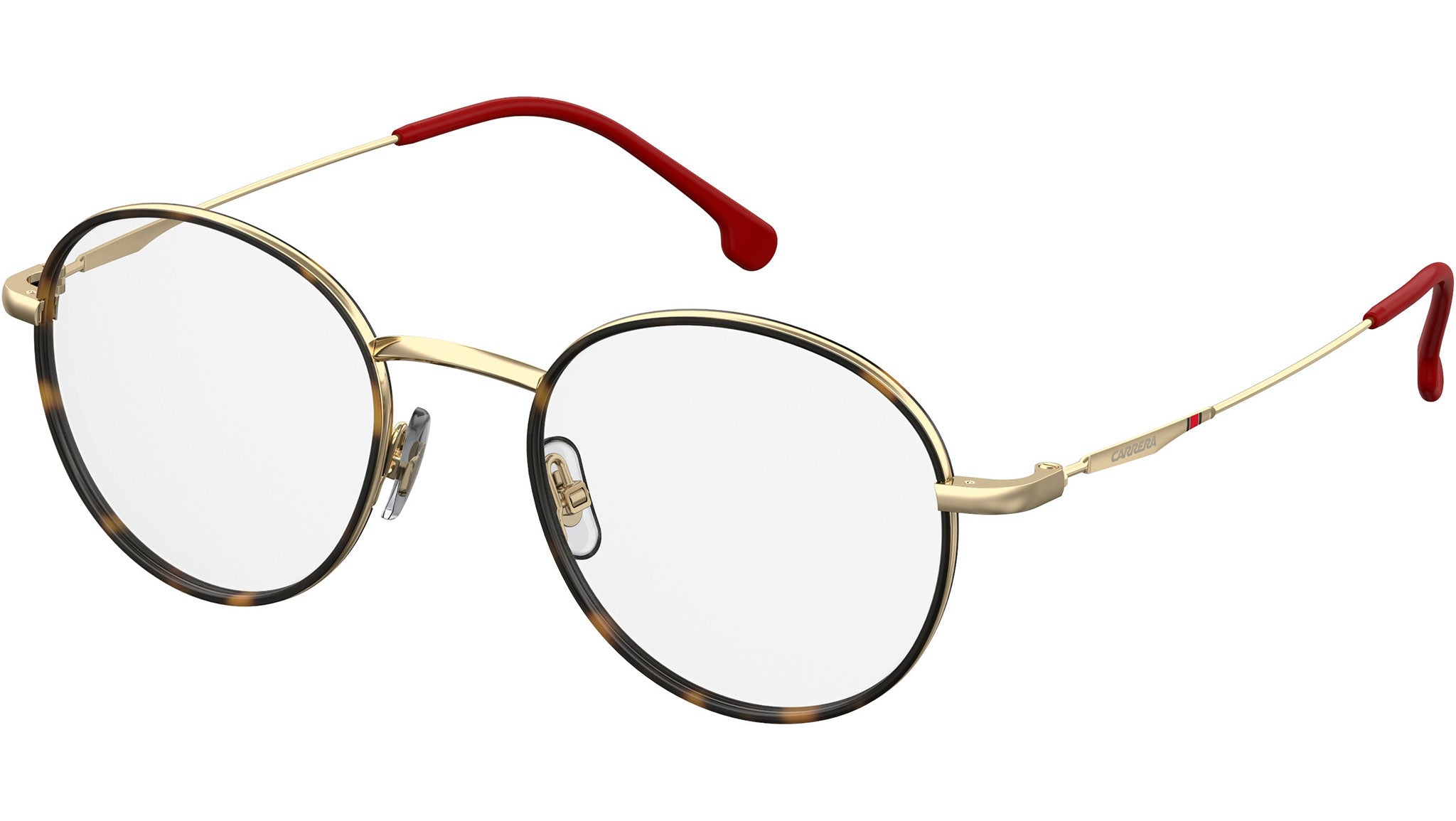 Occhiali da vista Carrera modello 157/V colore 06J gold havana. I Carrera 157/V sono un modello di occhiali da vista da uomo tondi in acciaio inossidabile e acetato. Il design è caratterizzato dalla presenza del logo inciso a bassorilievo accanto alla bandiera del brand, nella parte sinistra della montatura.