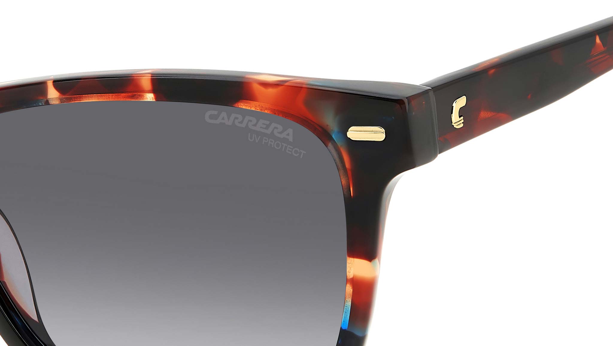 Occhiali da sole Carrera modello 3001/S colore JBW 9O blue havana. Spazio alla femminilità. Gli elementi tipici del mondo Carrera spiccano su questi occhiali da sole per donna. La montatura in acetato è infatti firmata dalla “C” Carrera in rilievo sulle aste, e dal rivetto in metallo sul frontale. Aggiunge personalità la palette cromatica: il modello è disponibile anche in versione trasparente, con lavorazione multistrato e in havana colorata. La possibilità di montare lenti da sole graduate lo rende un accessorio personalizzabile.