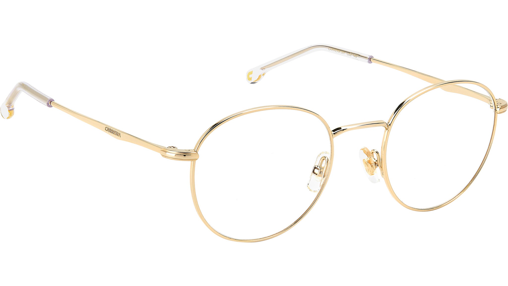 Occhiali da vista Carrera modello 307 colore LOJ gold crystal. Occhiali da vista unisex dallo stile pulito e minimale, dato dal leggero profilo pantos in acciaio inossidabile sostenuto da naselli regolabili. Le aste sottili, con silhouette a pinna, rileggono in chiave moderna le forme archetipe dell’heritage Carrera. Sono inoltre completate da terminali in acetato, anche nelle varianti multistrato, nota che aggiunge stile e confort al modello. Le lenti sono disponibili in due diversi calibri, assicurando così una vestibilità davvero personalizzata.