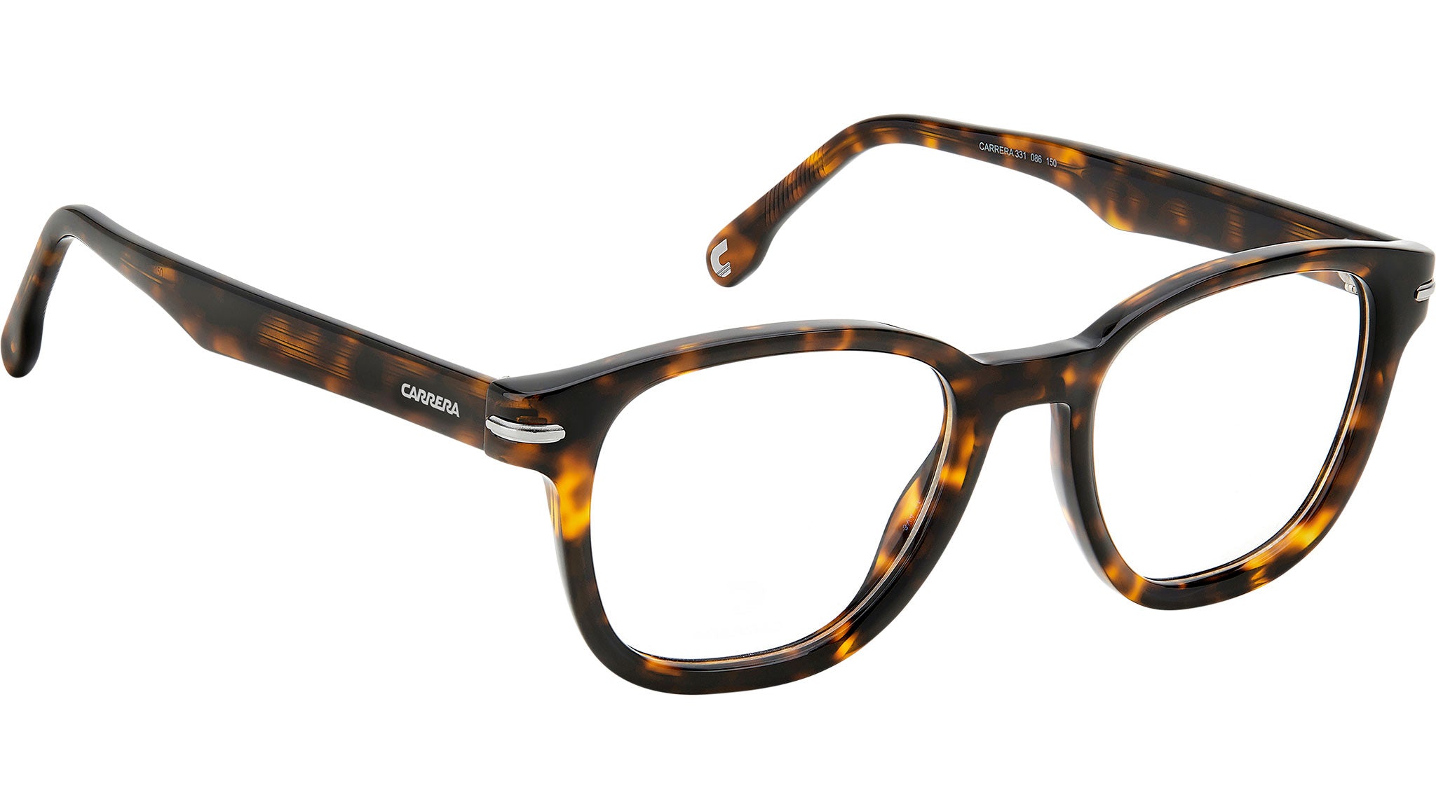 Occhiali da vista Carrera modello 331 colore 086 havana. Volumi notevoli sapientemente calibrati definiscono il carattere di questi occhiali da vista Carrera. Si fa notare la montatura in acetato, esaltata dall’inserto metallico nella forma di una “C” orizzontale. Le aste a pinna sono tipiche Carrera, qui rivisitate in chiave moderna, sempre firmate dal logo stampato. Sarà un piacere scegliere tra le diverse proposte cromatiche, anche multistrato o trasparenti con anima a vista.