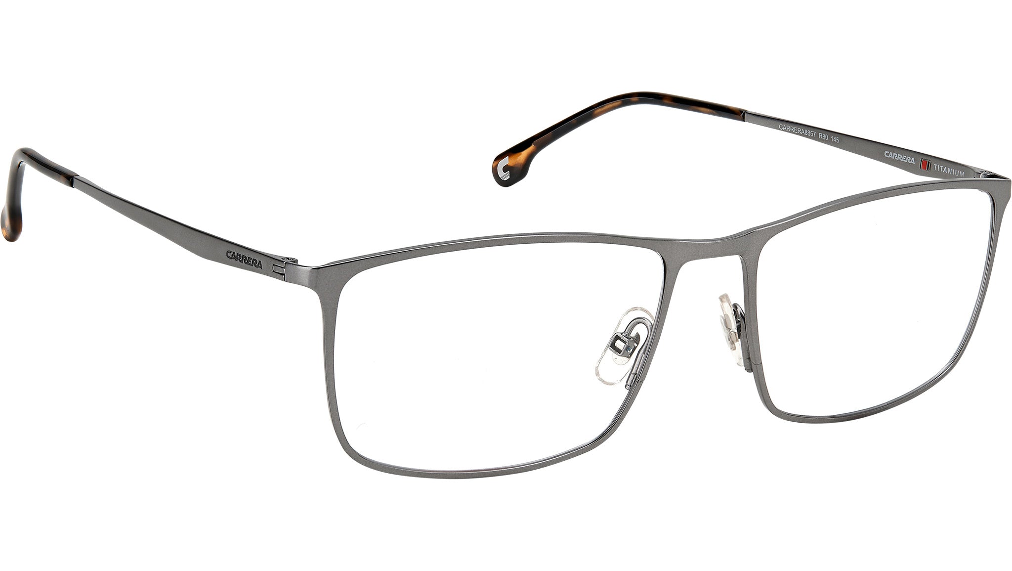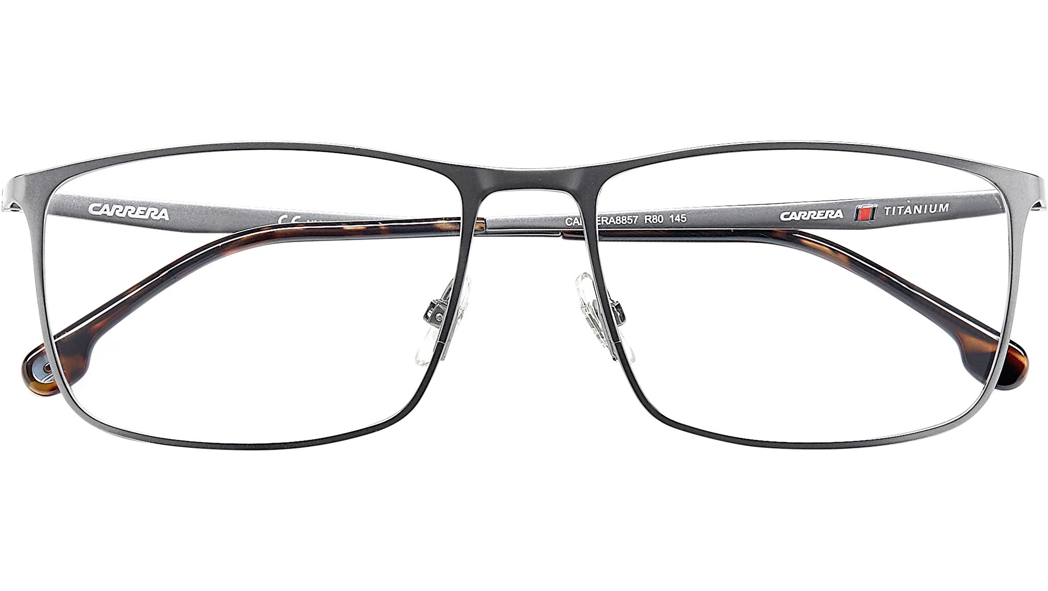 Occhiali da vista Carrera modello 8857 colore R80 matte dark ruthenium. L’ultima novità della linea Carrera Active – questi occhiali da vista sono caratterizzati da una montatura quadrata e aste sottili interamente realizzate in titanio, leggero e resistente al tempo stesso. La scelta perfetta per l’uomo che cerca un accessorio pratico e a prova di futuro, il modello è corredato di naselli in silicone regolabili e dettagli discreti, per una finitura moderna e minimal.
