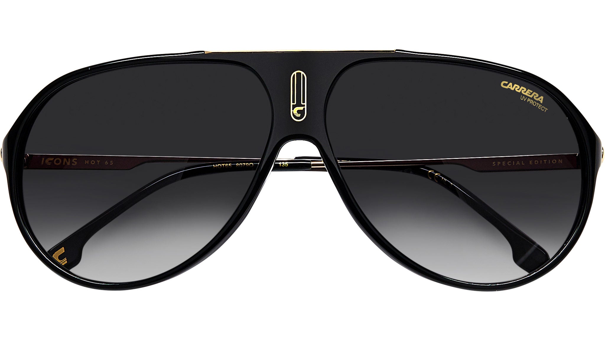 Occhiali da sole Carrera modello HOT65 colore 807 black. Una moderna reinterpretazione di un modello bestseller – questi occhiali da sole unisex sono stati progettati in esclusiva per celebrare il 65° anniversario di Carrera. La silhouette aviatore rimane fedele all’heritage del brand, mentre una serie di dettagli distintivi ne sottolinea il fascino cool e sempre attuale. Da notare l’elegante inserto in metallo sulla barra centrale, l’iconica C che decora il frontale e il logo lettering lungo le tempie, per un look d’impatto da ogni angolo.