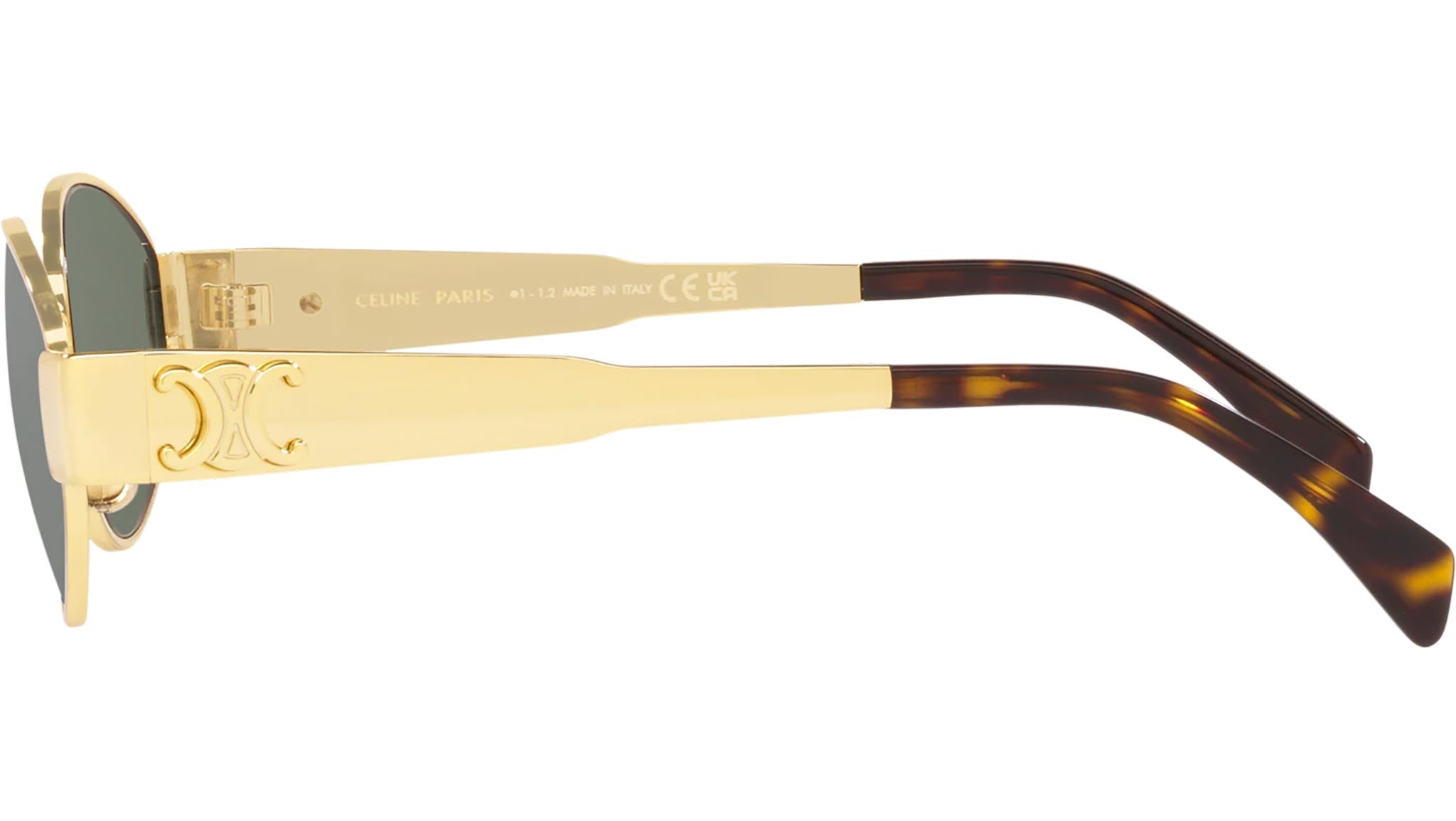 Occhiali da sole CELINE donna CL40235U linea Metal Triomphe colore 30N oro. Nuovo logo Triomphe sulle aste. Rivenditore autorizzato online CELINE. Gli occhiali vengono consegnati con custodia e accessori originali.
