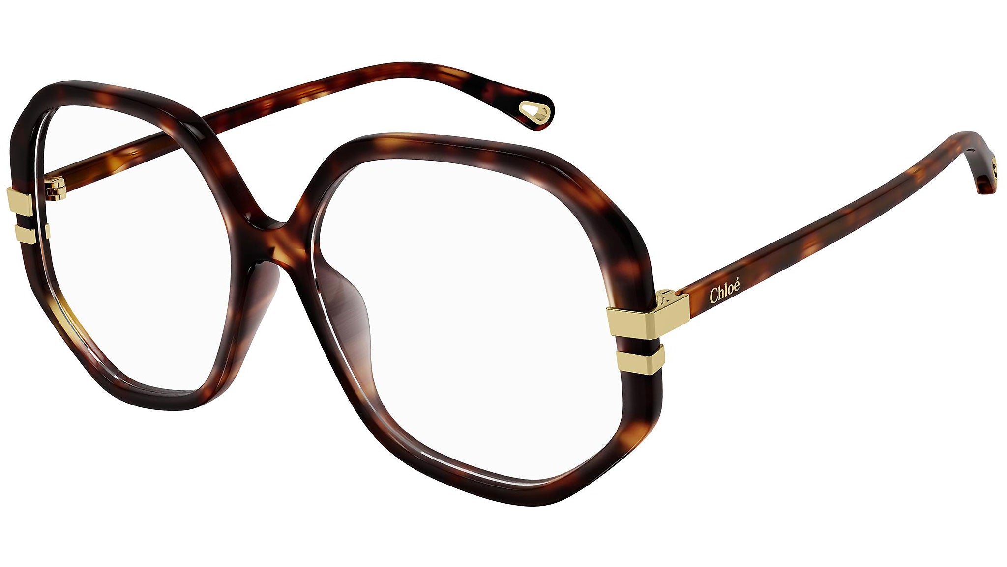 Occhiali da vista Chloé modello 0107O, variante colore 004 avana medio lucido con astine color tartaruga.