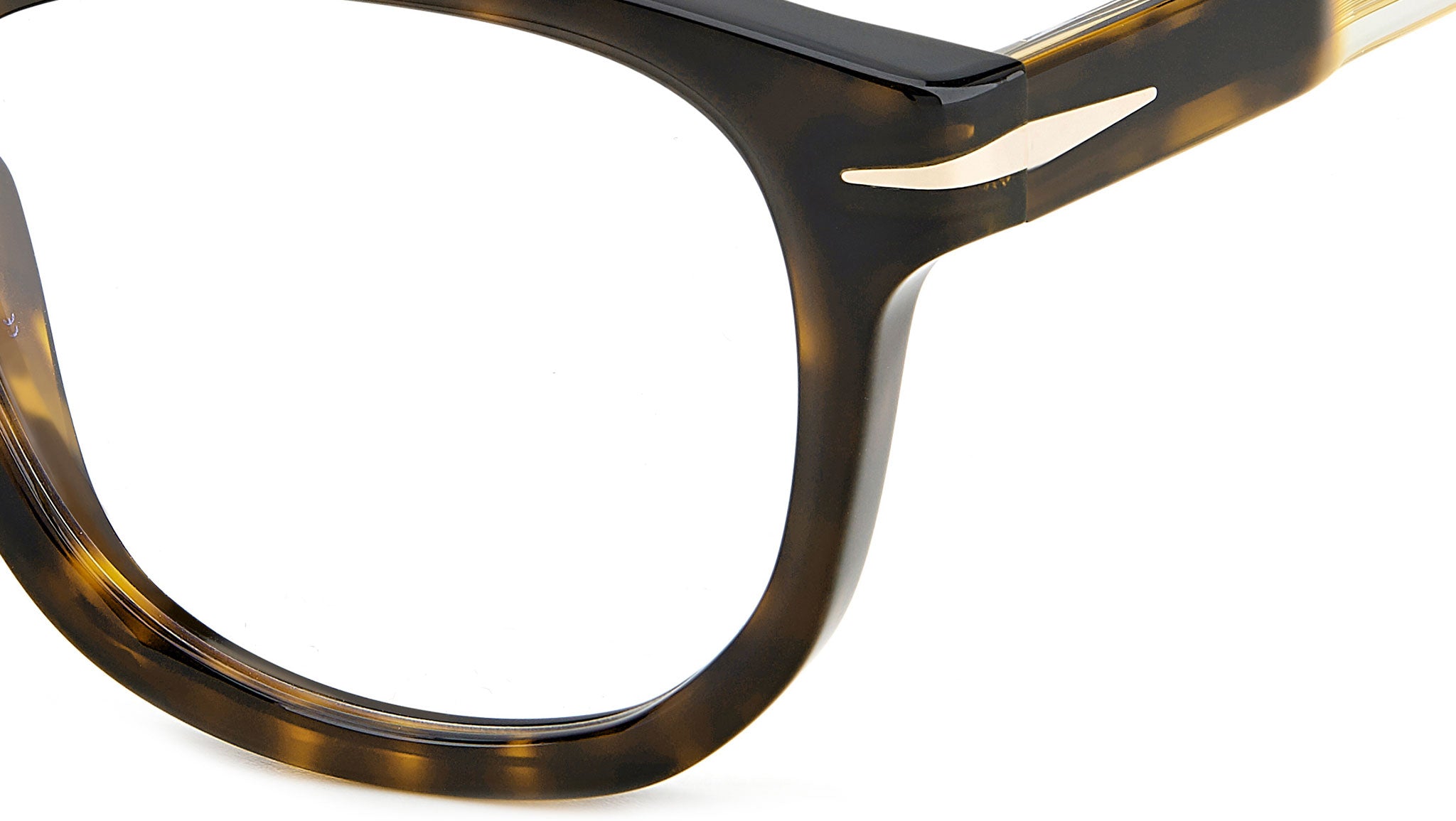 Una scelta audace e contemporanea – questi occhiali da vista si distinguono con la loro spessa montatura quadrata, sapientemente realizzata in acetato. Il profilo leggermente arrotondato è caratterizzato da un comodo ponte a chiave e da aste robuste, per un fit sicuro e di supporto. Scolpite in acetato traslucido, rivelano l’anima di metallo cesellata, incisa con l’iconico logo DB, discretamente visibile all’interno.