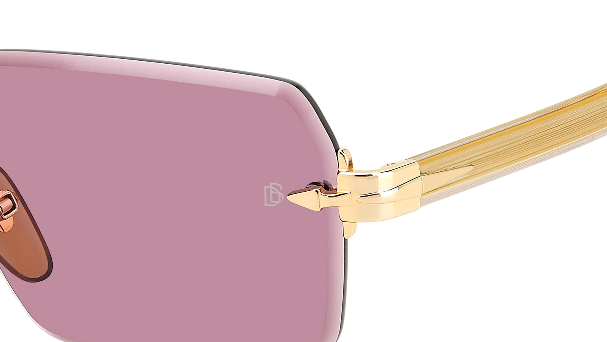 David Beckham interpreta le nuove tendenze e propone occhiali da sole con montatura rimless. Le viti sulle lenti diventano piccole frecce in metallo, fusione di funzionalità ed estetica che caratterizza il brand. Anche l’aggancio alle aste è in metallo, decorato dal dettaglio a forma di rombo. La firma del brand è sulle aste in acetato, il monogramma è sui terminali e sulle lenti da sole, disponibili anche graduate e specchiate.