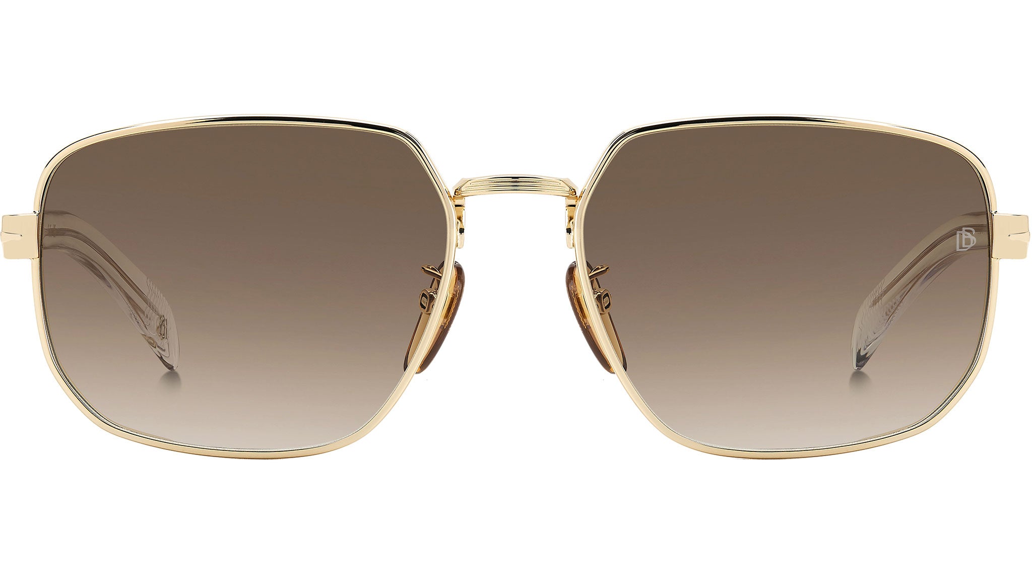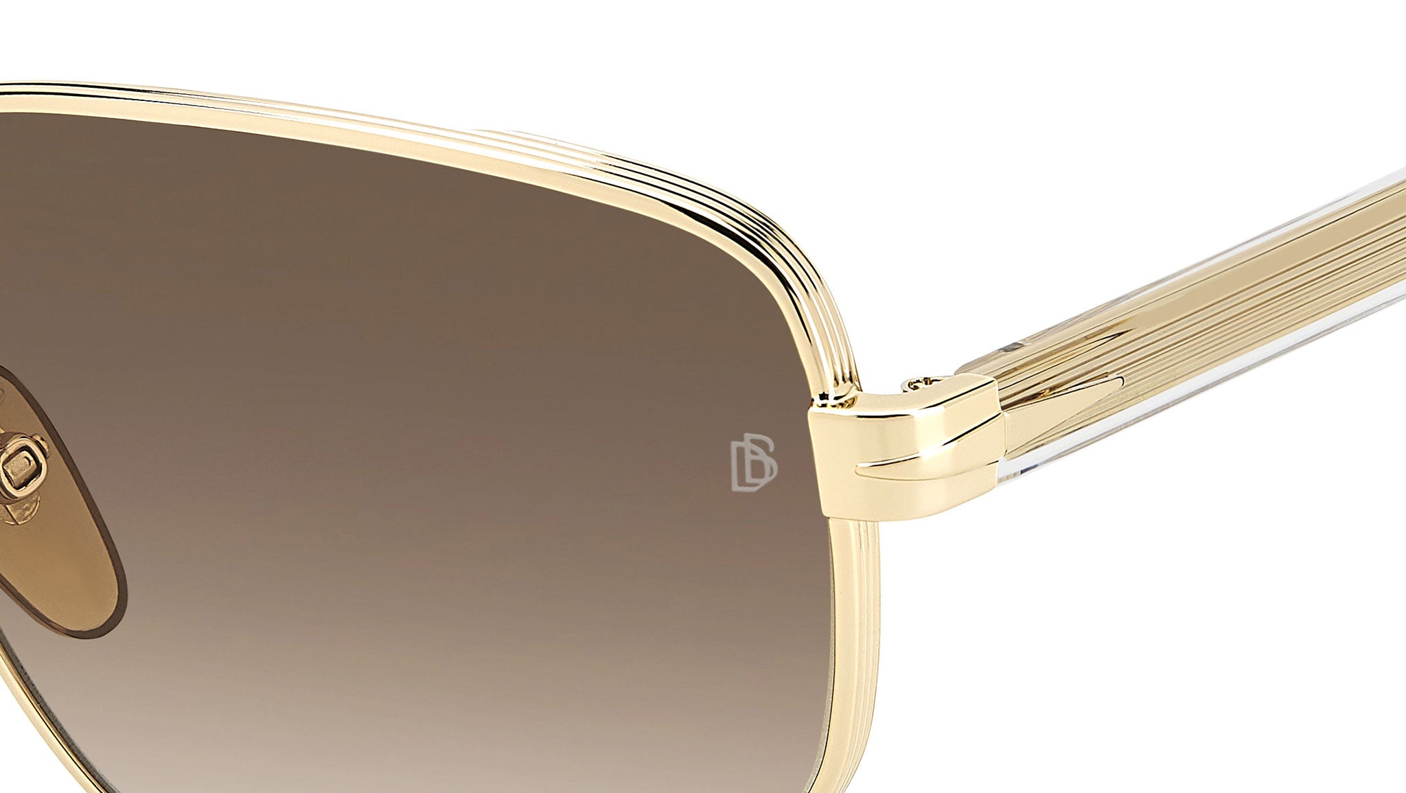 Occhiali da sole David Beckham modello DB 7121/G/S codice colore LOJ HA Gold Crystal. David Beckham guarda alle ultime tendenze e le interpreta con il suo stile impeccabile. Il risultato sono occhiali da sole con frontale rettangolare in acciaio inossidabile, sostenuto da confortevoli naselli. Perfettamente abbinate le aste in acetato, disponibili anche in versione trasparente con anima a vista. Immancabili i simboli del brand: il rombo stilizzato, il monogramma sulle lenti e sui terminali e la firma estesa all’interno dell’asta.