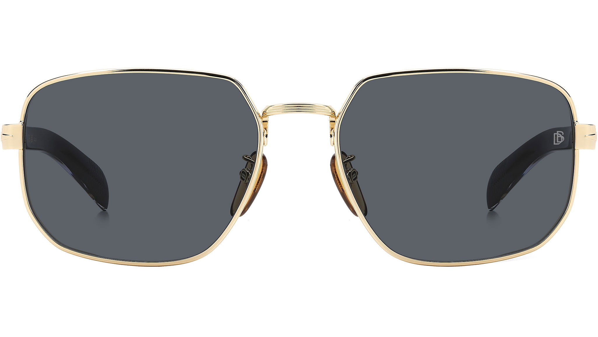Occhiali da sole David Beckham modello DB 7121/G/S codice colore RHL IR Gold Black. David Beckham guarda alle ultime tendenze e le interpreta con il suo stile impeccabile. Il risultato sono occhiali da sole con frontale rettangolare in acciaio inossidabile, sostenuto da confortevoli naselli. Perfettamente abbinate le aste in acetato, disponibili anche in versione trasparente con anima a vista. Immancabili i simboli del brand: il rombo stilizzato, il monogramma sulle lenti e sui terminali e la firma estesa all’interno dell’asta.