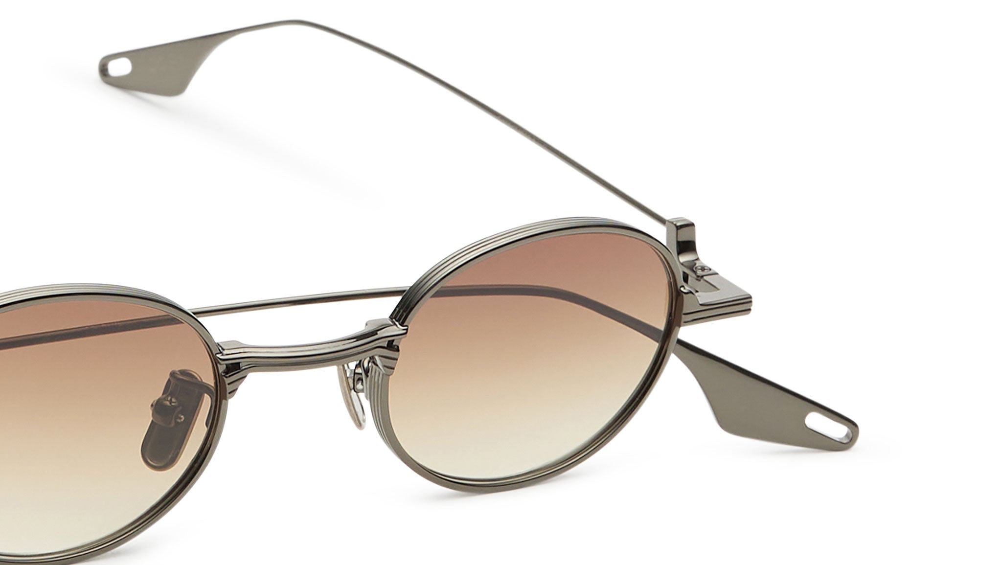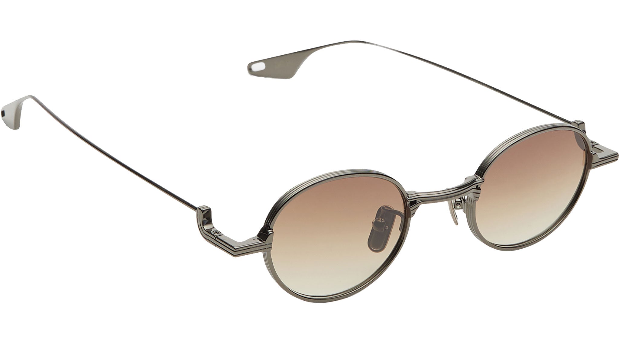 Progettati in Italia, gli occhiali da sole Sanbang 004 di District People incarnano un’eleganza intima e introspettiva, pensata per chi ricerca profondità e significato nel design. La montatura in metallo color argento scuro definisce una silhouette essenziale e misurata, abbinata a lenti CR-39 marroni sfumate che assicurano un’eccellente qualità ottica e una protezione UV affidabile. L’estetica discreta ma evocativa restituisce un fascino spirituale e una sofisticazione silenziosa, invitando a scoprire una bellezza sottile e stratificata.