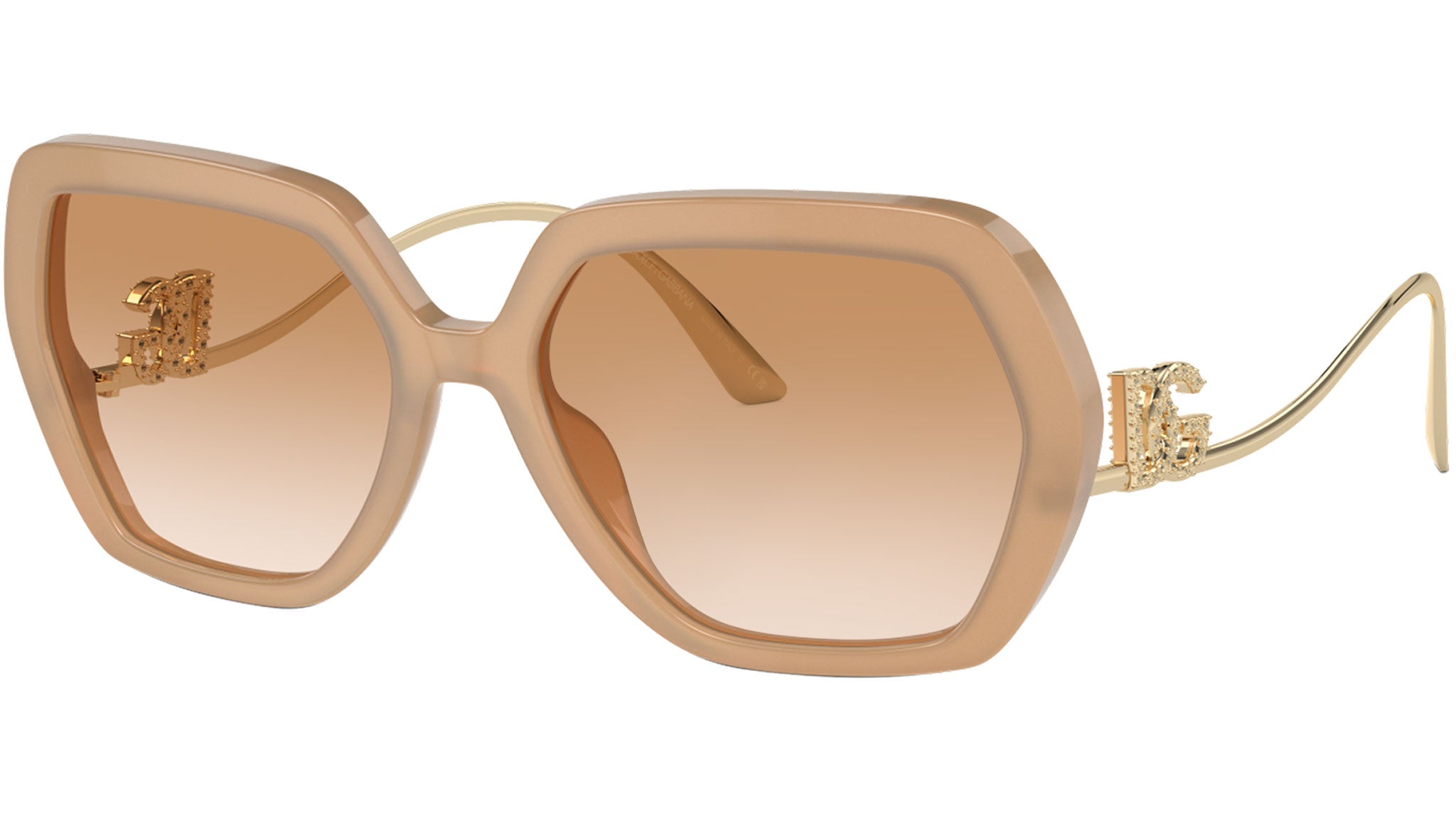 Occhiali da sole Dolce & Gabbana donna, modello 4468B con montatura opalino beige full rim in acetato e lenti base 4 in nylon marrone chiaro sfumato. Vestibilità a ponte alto. Linea: Statement. Codice modello: DG4468B. Codice colore: 34373B. Taglia: M adatta a un viso medio. Rivenditore online autorizzato Dolce & Gabbana. Gli occhiali vengono forniti con la custodia e gli accessori originali e sono coperti da una garanzia globale di 12 mesi.