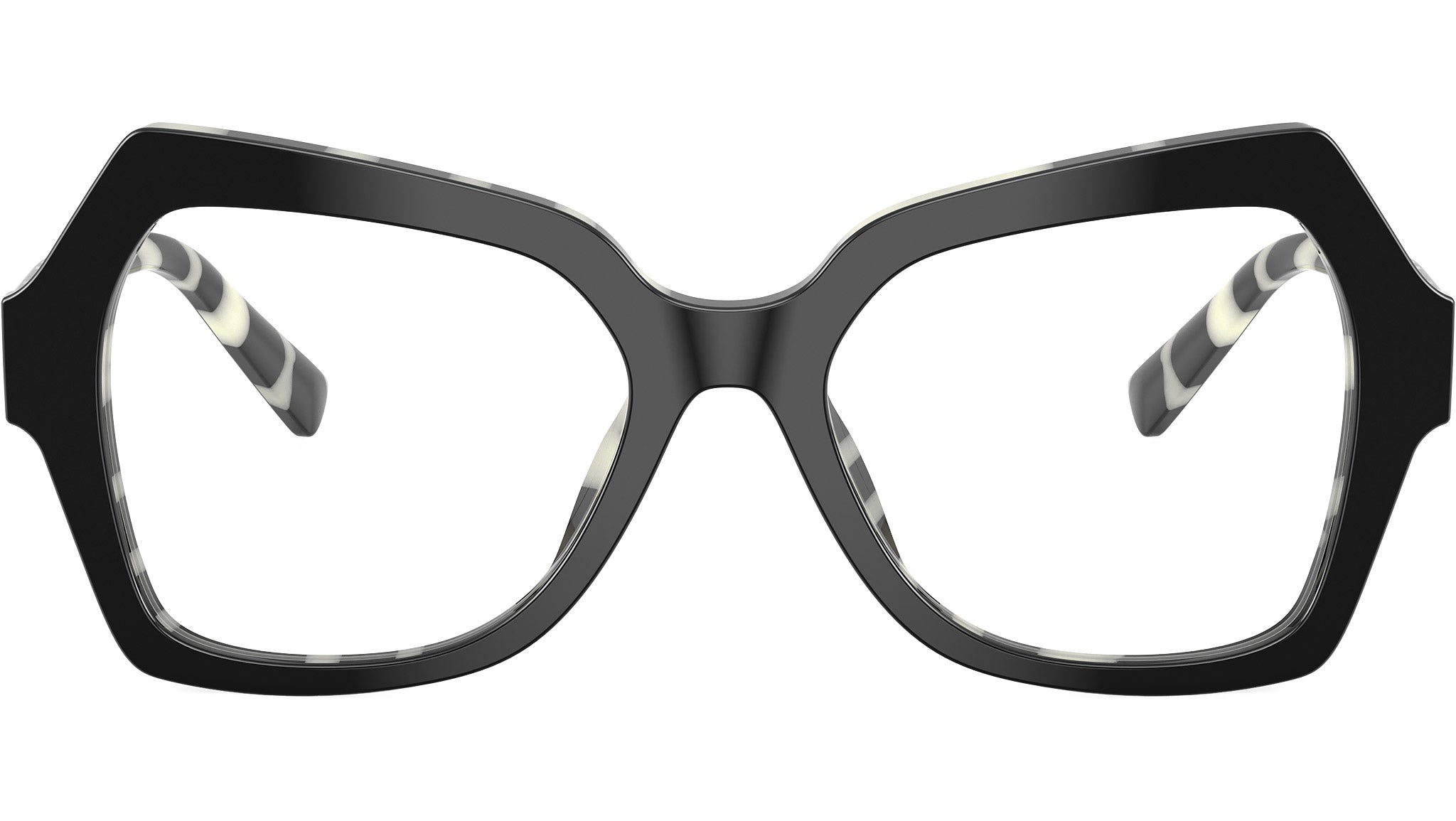 Occhiali da vista Dolce & Gabbana DG 3429 3372 donna con montatura butterfly in acetato nero su zebra e lenti demo. Fit universale. Linea: Dna. Codice modello: 0DG3429. Codice colore: 3372. Made in Italy. Rivenditore autorizzato Dolce & Gabbana online. Gli occhiali vengono consegnati con custodia e accessori originali e sono coperti dalla garanzia ufficiale di 12 mesi del produttore.
