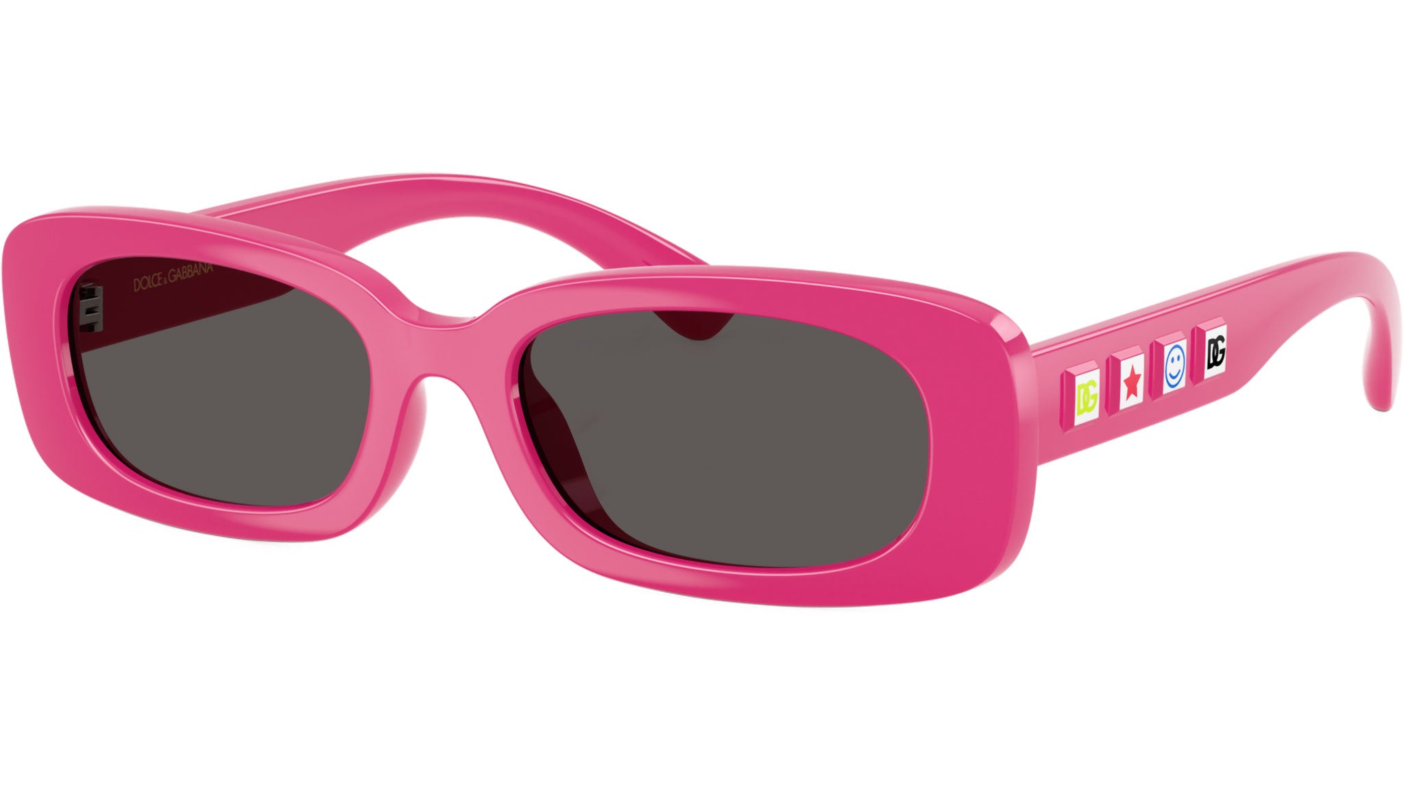 Occhiali da sole Dolce & Gabbana Kids DX 6006U 309887 con montatura rettangolare in Injected fucsia e lenti in policarbonato color grigio scuro. Fit universale. Linea: Dna. Codice modello: 0DX6006U. Codice colore: 309887. Made in Italy. Rivenditore autorizzato Dolce & Gabbana Kids online. Gli occhiali vengono consegnati con custodia e accessori originali e sono coperti dalla garanzia ufficiale di 12 mesi del produttore.