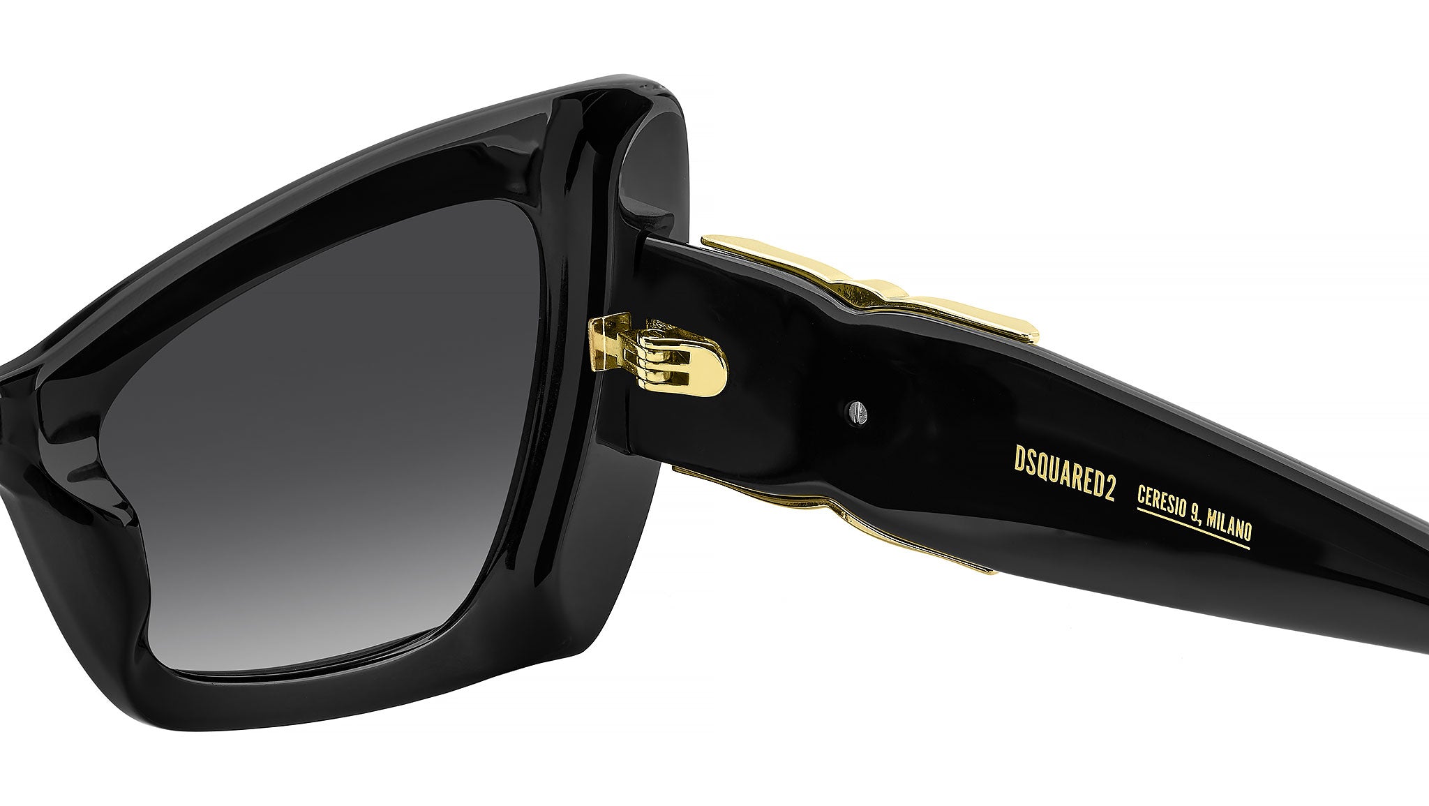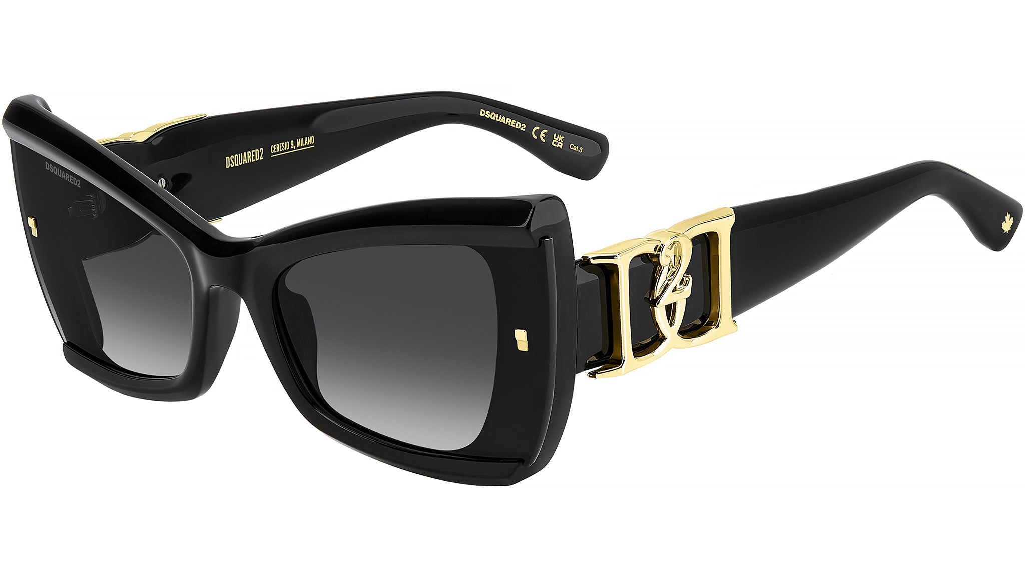 Occhiali da sole Dsquared2 D2 0170/S 807 9O donna con montatura butterfly in acetato nero e lenti demo. Occhiali da sole donna Dsquared2 dalla costruzione plastica e scultorea. Il frontale è un capolavoro di design: decisamente bold, con volumi pieni, lenti aperte ai lati, rivetti squadrati in metallo. Il nuovo logo con le due D intrecciate abbraccia le aste, incastonato come un gioiello metallico. La montatura arriva anche nella variante realizzata con la tecnica della termoformatura, composta da due strati di acetato dal finish a contrasto. Linea: Hype. Codice modello: 207906. Codice colore: 807 9O. Rivenditore autorizzato Dsquared2 online. Gli occhiali vengono consegnati con custodia e accessori originali e sono coperti dalla garanzia ufficiale di 12 mesi del produttore.