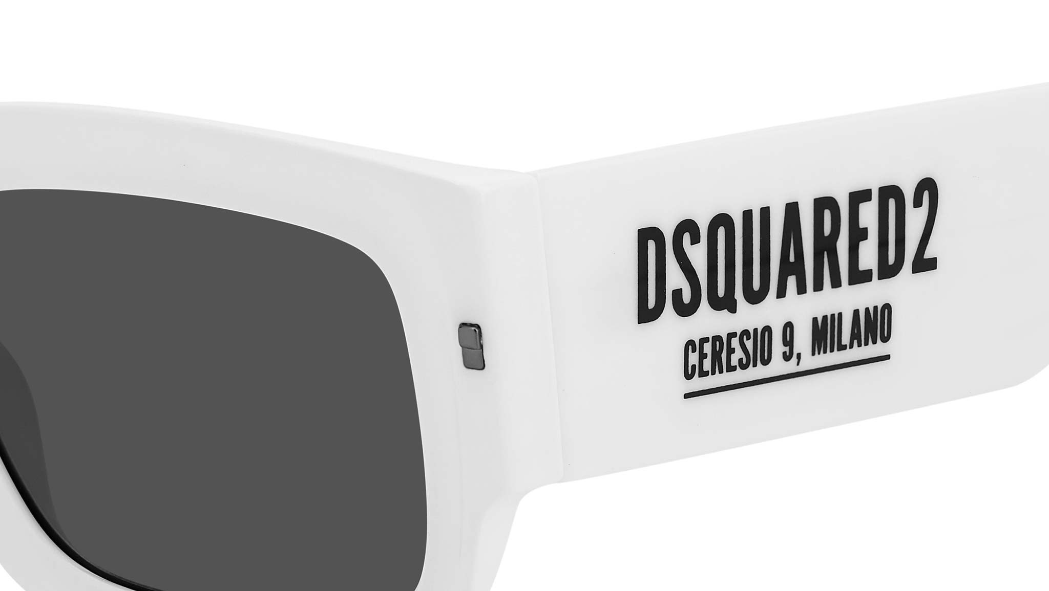 Occhiali da sole Dsquared2 modello D2 0089/S codice colore VK6 in acetato bianco con lenti in CR-39 grigio. Questi occhiali da sole hanno aste bold firmate dal marchio con il logo in alto rilievo DSQUARED2 e la scritta CERESIO 9, MILANO, e nei terminali dall’immancabile foglia d’acero. L’esclusivo design di questi occhiali maschili ispirato agli accessori del brand è valorizzato anche dal frontale bold in acetato con gli iconici rivetti in metallo che completa uno stile dalla forte personalità. Rivenditore autorizzato online Dsquared2.