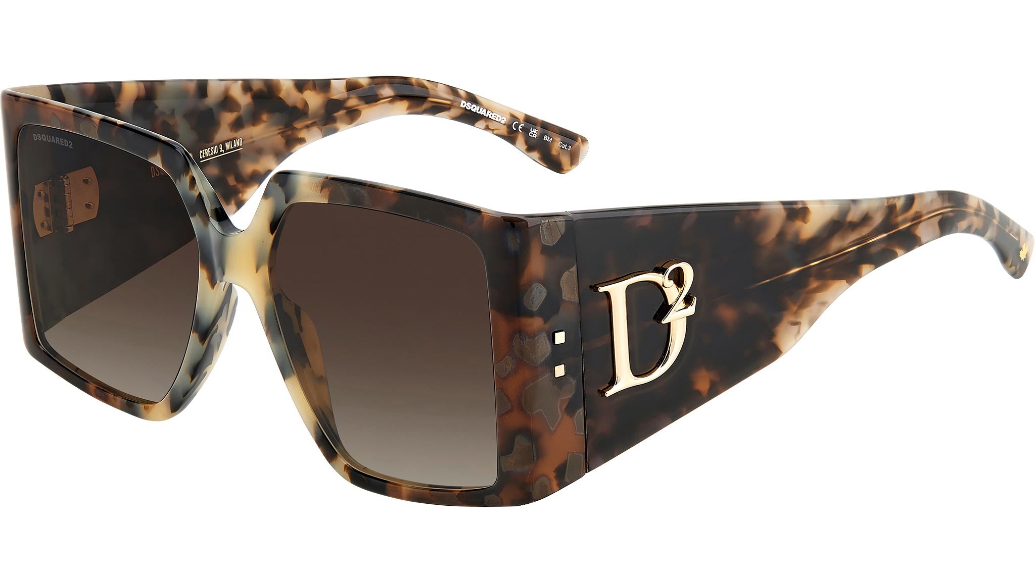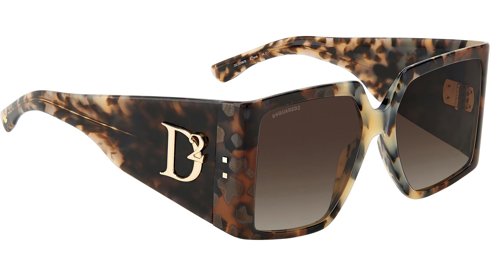 Occhiali da sole Dsquared2 modello D2 0096/S codice colore ACI in acetato grigio avana con lenti in CR-39 marrone sfumato. In questi occhiali da sole DSQUARED2 dal design unico nel suo genere il frontale in acetato, dallo spessore sottile e un’ampia superficie frontale lavorata, si unisce ad aste bold firmate dal macro logo D2 in alto rilievo ispirato dagli accessori donna. Il brand è presente con i suoi inconfondibili dettagli anche sulle lunette con due rivetti in metallo e sui terminali con la foglia d’acero. La scritta CERESIO 9, MILANO personalizza l’occhiale all’interno dell’asta destra, mentre sulla lente da sole compare la firma DSQUARED2. Rivenditore autorizzato online Dsquared2.