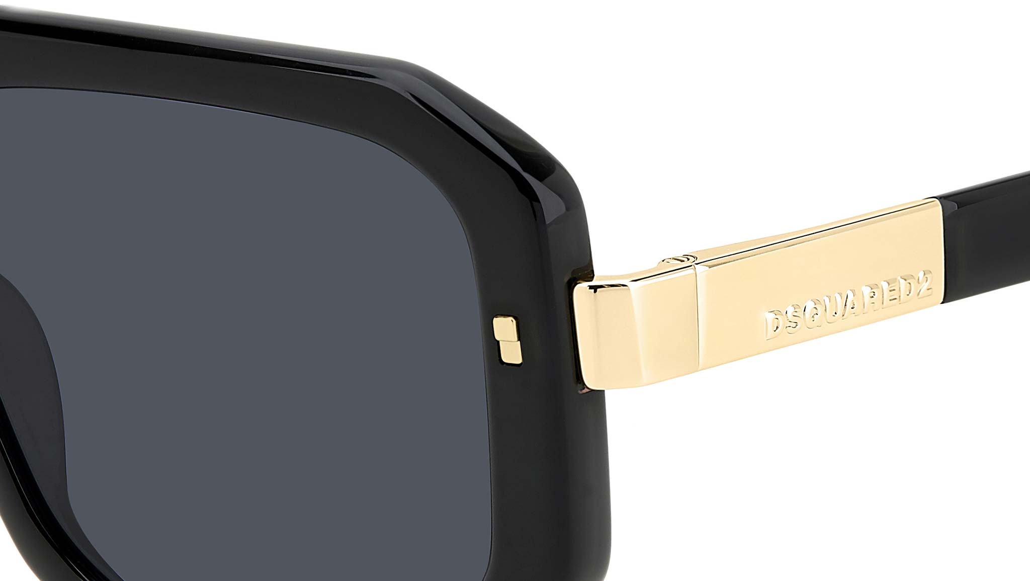 Occhiali da sole Dsquared2 modello D2 0105/S codice colore 807 in acetato nero con lenti in CR-39 grigio antiriflesso. Lo spirito cool e grintoso di DSQUARED2 è fedelmente custodito da questi occhiali da sole per uomo. Stupisce il frontale con doppio ponte di forma navigator e profili bold in acetato decorati da originali rivetti metallici. Le aste in metallo sfoggiano il logo DSQUARED2 decentrato e in rilievo, e la dicitura CERESIO 9, MILANO sul lato interno. I terminali lunghi in acetato sono impreziositi dalla foglia d’acero, simbolo del brand. Rivenditore autorizzato online Dsquared2.