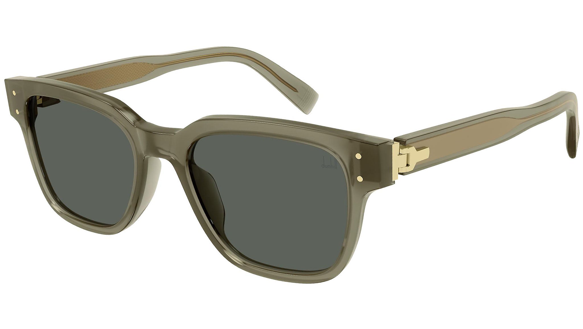 Occhiali da sole Dunhill modello 0045S, variante colore 004 fango lucido lattiginoso con lenti color verde tinta unita. Un marchio autentico, incentrato su un design curato e sofisticato. Dunhill rappresenta una delle firme britanniche più riconoscibili nel panorama dell’eyewear, vera icona in materia di lusso e lifestyle.
