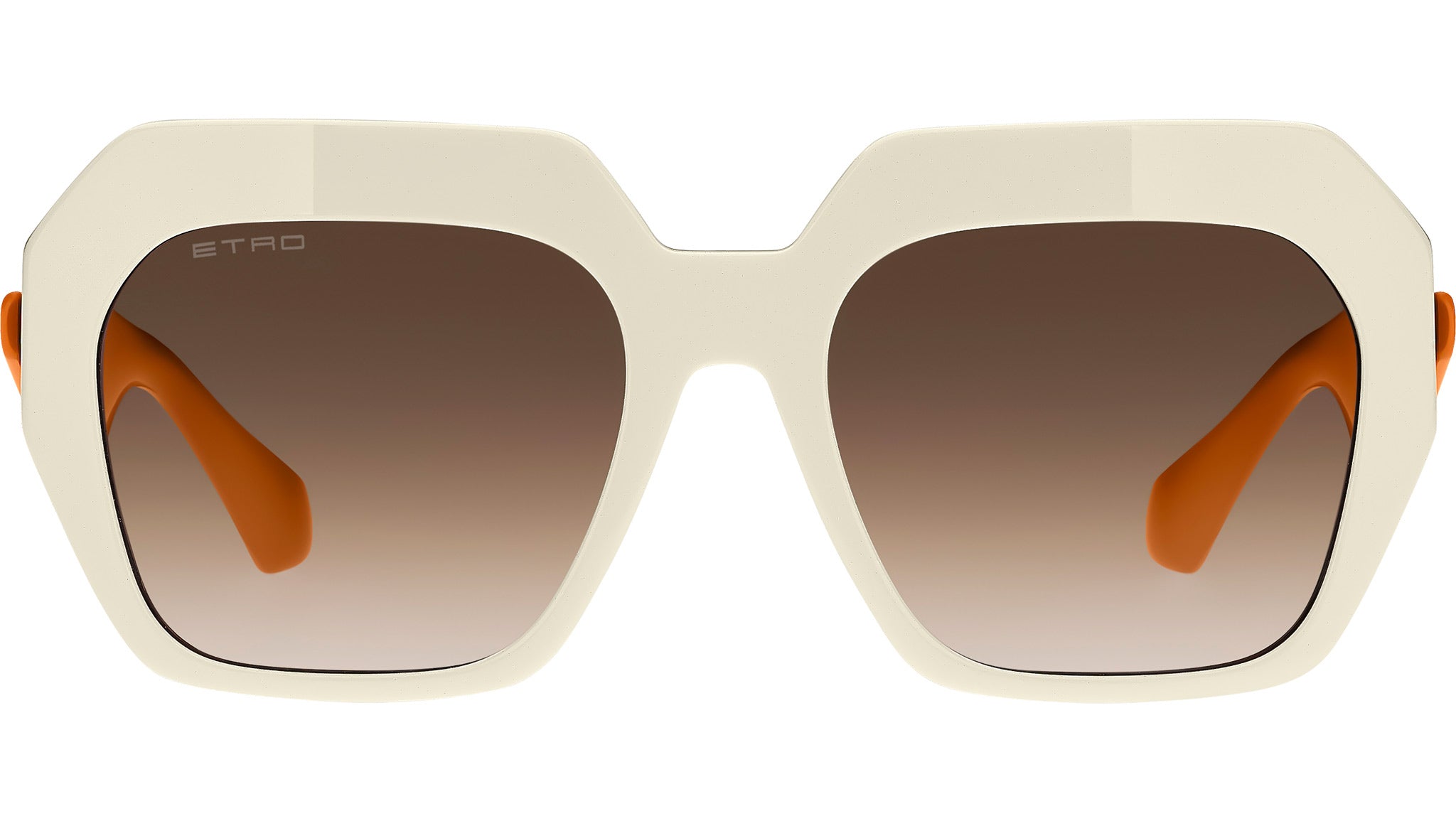 Occhiali da sole Etro 0043/S IXN HA donna con montatura squadrata in acetato bianco arancio e lenti in CR-39 marrone sfumato. Brillante, dinamica e ribelle, la collezione di occhiali "ETRO Tailoring" si rinnova con una nota contemporanea. Questi occhiali da sole interpretano i temi della collezione attraverso volumi generosi e forme sinuose. Accuratamente realizzati in acetato ultraleggero, il profilo leggermente curvo è completato da aste triangolari d'ispirazione vintage. I terminali iconici della Maison e il micro logo sono dettagli senza tempo che non passeranno mai di moda. Linea: Tailoring. Codice modello: 207302. Codice colore: IXN HA. Rivenditore autorizzato Etro online. Gli occhiali vengono consegnati con custodia e accessori originali e sono coperti dalla garanzia ufficiale di 12 mesi del produttore.