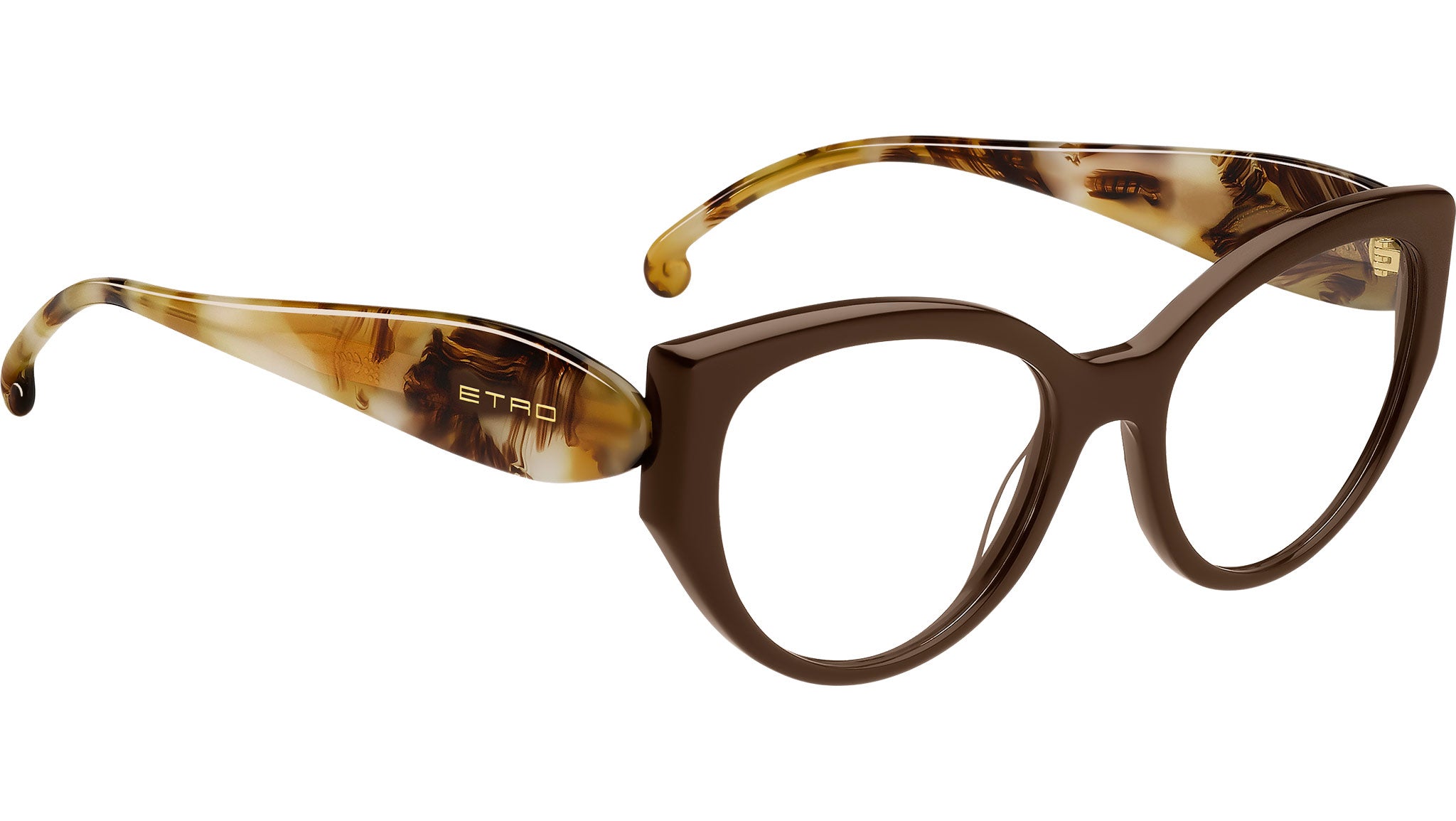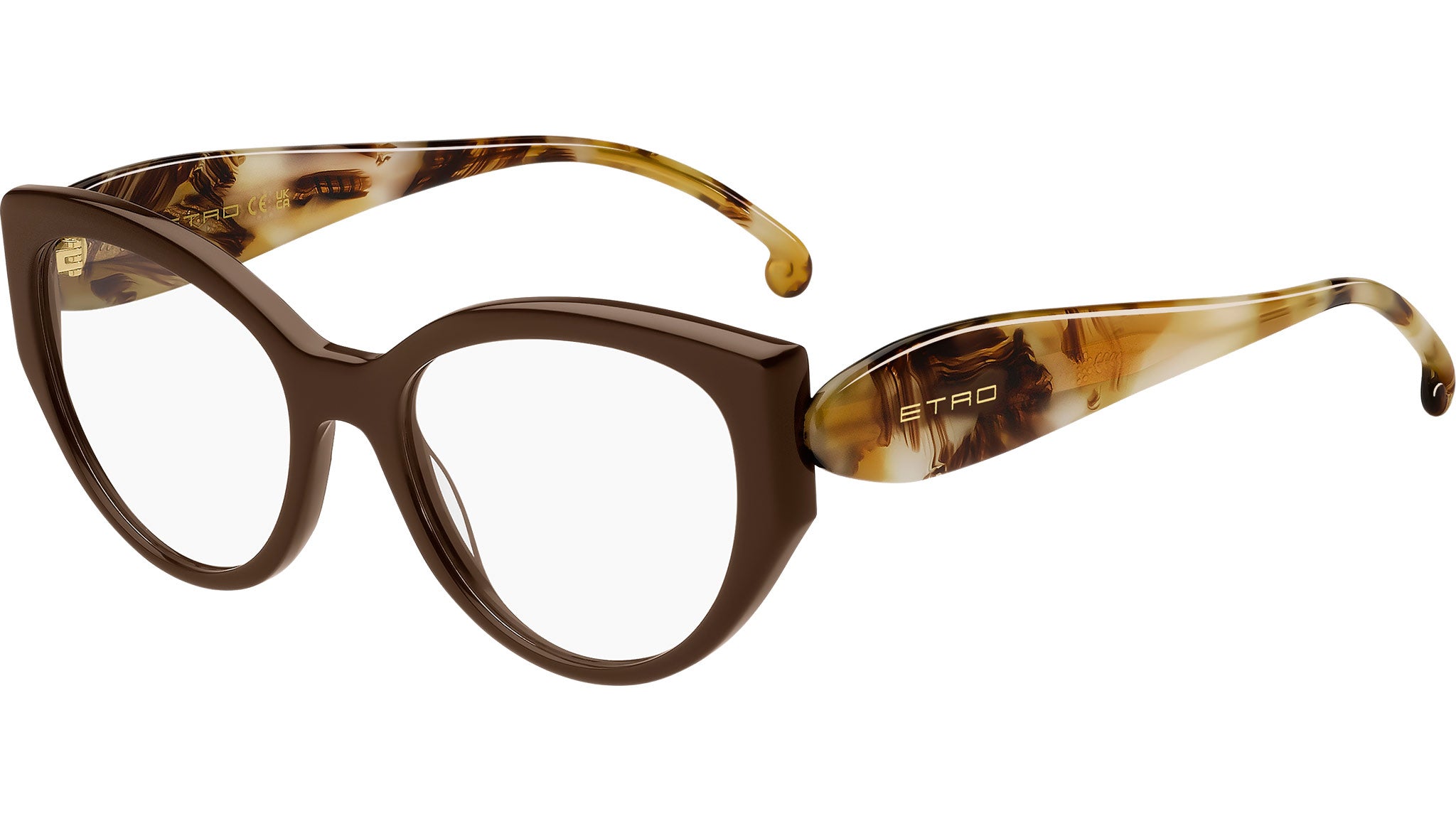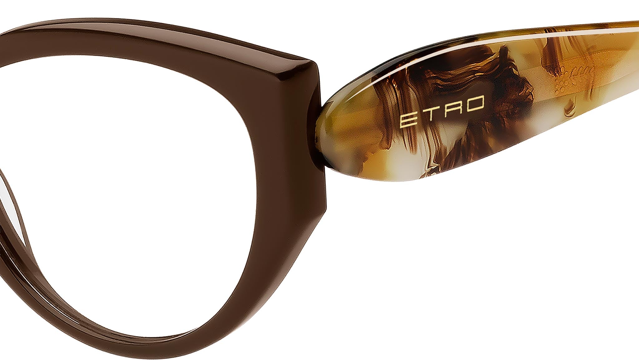 Occhiali da vista Etro 0057 09Q donna con montatura cat eye in acetato marrone e lenti demo. La linea eyewear "Etropaisley" interpreta il classico motivo Paisley in una inaspettata chiave grafica. Questi occhiali da vista in acetato richiamano l'eleganza opulenta ed eclettica di ETRO attraverso volumi audaci, forme geometriche e una palette di colori sofisticata. La montatura, apparentemente semplice ed essenziale, si distingue per le aste dal design unico, ispirato alle linee iconiche del Paisley. Il logo metallico su entrambi i lati completa il modello con un tocco di eleganza minimale. Linea: Etromania. Codice modello: 108773. Codice colore: 09Q. Rivenditore autorizzato Etro online. Gli occhiali vengono consegnati con custodia e accessori originali e sono coperti dalla garanzia ufficiale di 12 mesi del produttore.