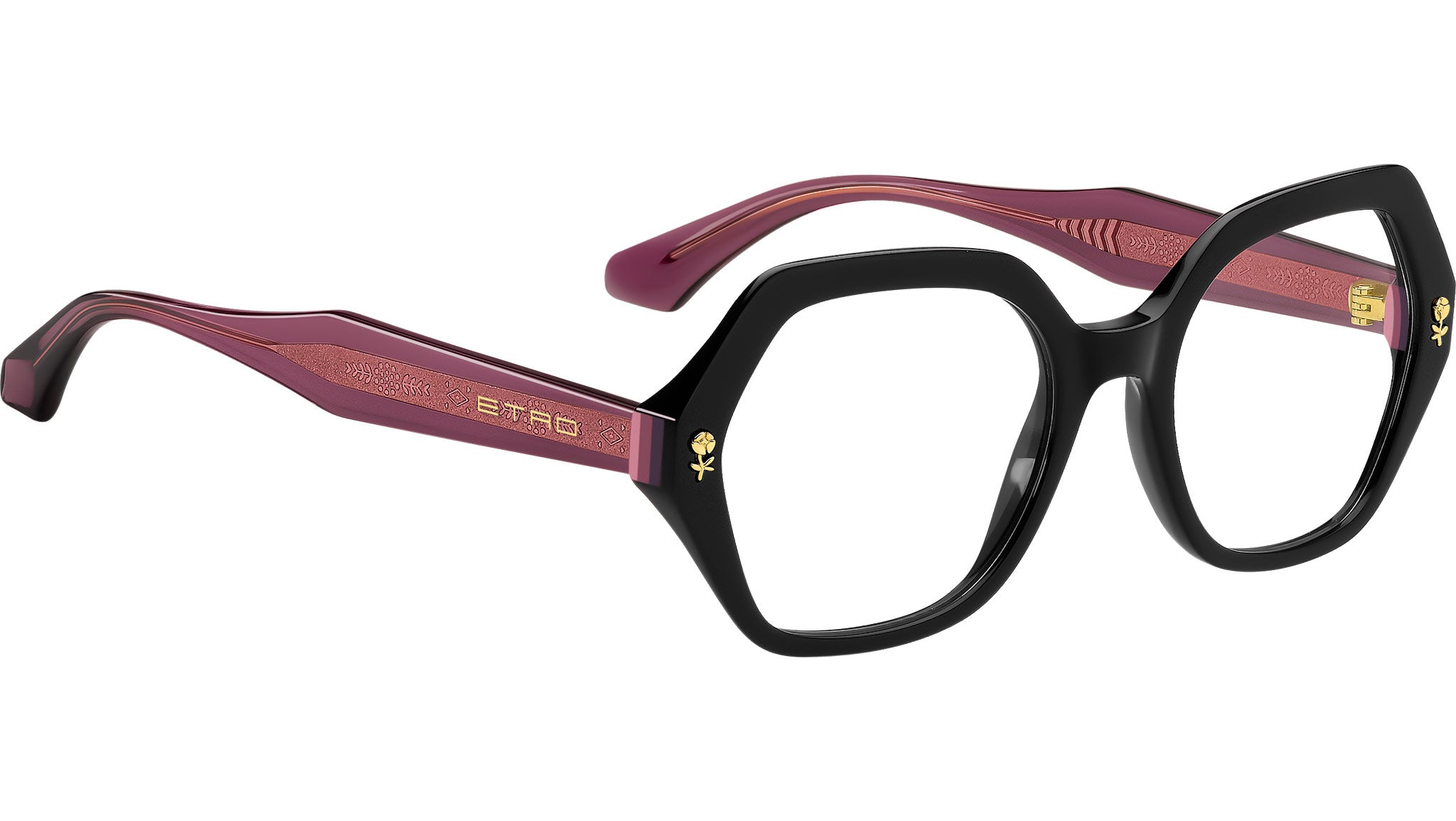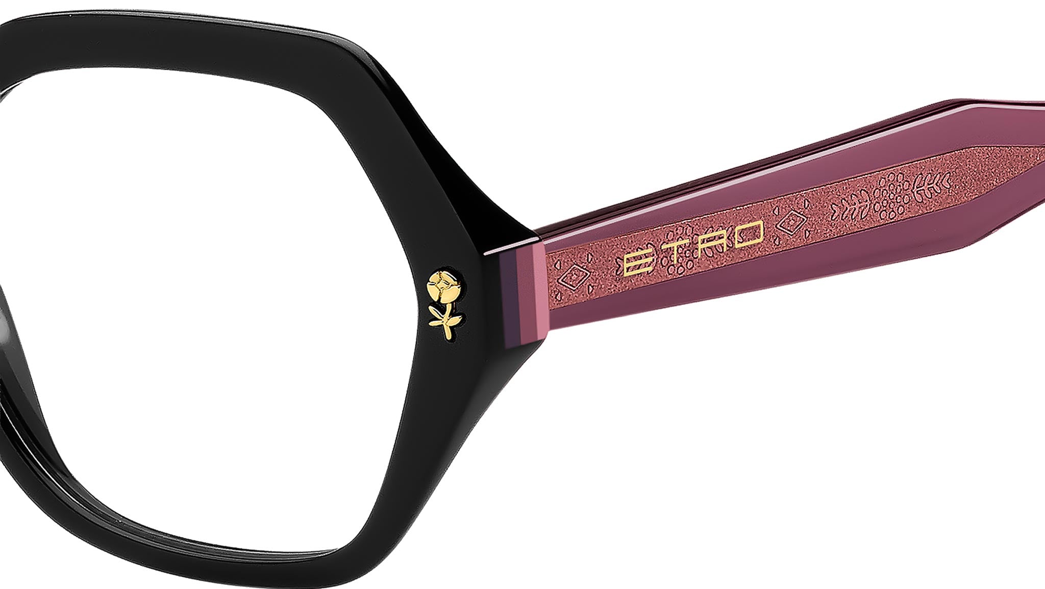 Occhiali da vista Etro 0012 HK8 donna con montatura butterfly in acetato nero viola e lenti demo. Un omaggio ai motivi a righe e pattern floreali che contraddistinguono il codici stilistici di ETRO, la collezione eyewear "Colour Stripes" traduce i ricami e le stampe iconiche della Maison in occhiali da vista dall'estetica eclettica e innovativa. La montatura in acetato dai volumi audaci, rifinita con profili smussati, è arricchita da una preziosa decorazione in metallo a forma di fiore e da un inserto a righe multicolore sui lati. L’anima in metallo visibile attraverso le aste trasparenti aggiunge un tocco grafico. Il design dei terminali in acetato richiama la simmetria del logo ETRO. Linea: Etromania. Codice modello: 108229. Codice colore: HK8. Rivenditore autorizzato Etro online. Gli occhiali vengono consegnati con custodia e accessori originali e sono coperti dalla garanzia ufficiale di 12 mesi del produttore.