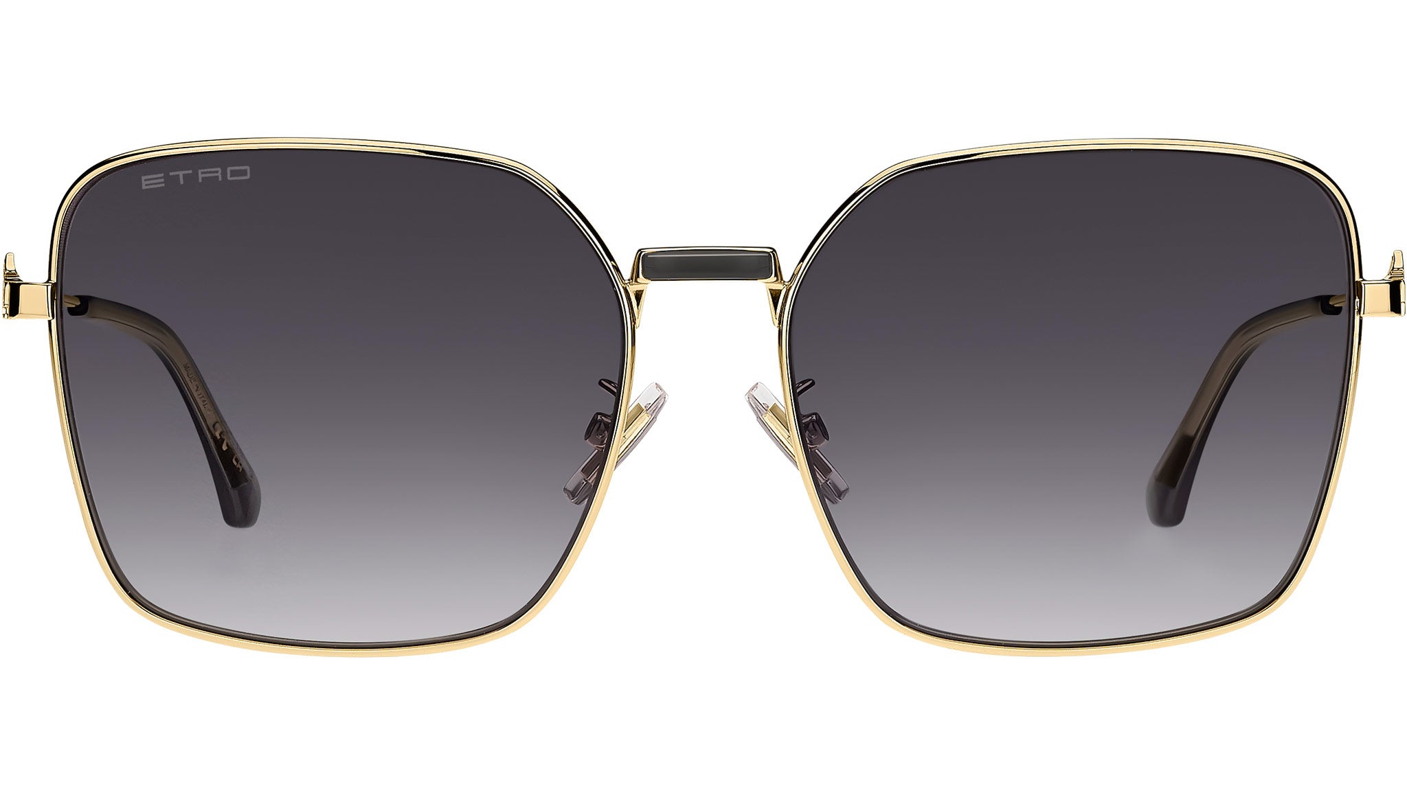 Occhiali da sole Etro 0061/F/S J5G 9O donna con montatura squadrata in metallo oro e lenti in CR-39 grigio scuro sfumato. Parte della collezione eyewear Asian Fitting di ETRO, la linea "Metal Pegaso" sintetizza l'energia creativa del brand in una selezione di occhiali da sole in metallo ultraleggero. La costruzione essenziale e l'inserto colorato che arricchisce il ponte nasale esprimono un senso di leggerezza e semplicità, mentre l'iconico Pegaso viene reinterpretato sulle aste sotto forma di preziosi dettagli metallici. Gli elementi distintivi di ETRO – dai naselli, ai terminali, alle lenti incise con il logo – aggiungono una nota particolarmente lussuosa. Linea: Etromania. Codice modello: 207313. Codice colore: J5G 9O. Rivenditore autorizzato Etro online. Gli occhiali vengono consegnati con custodia e accessori originali e sono coperti dalla garanzia ufficiale di 12 mesi del produttore.