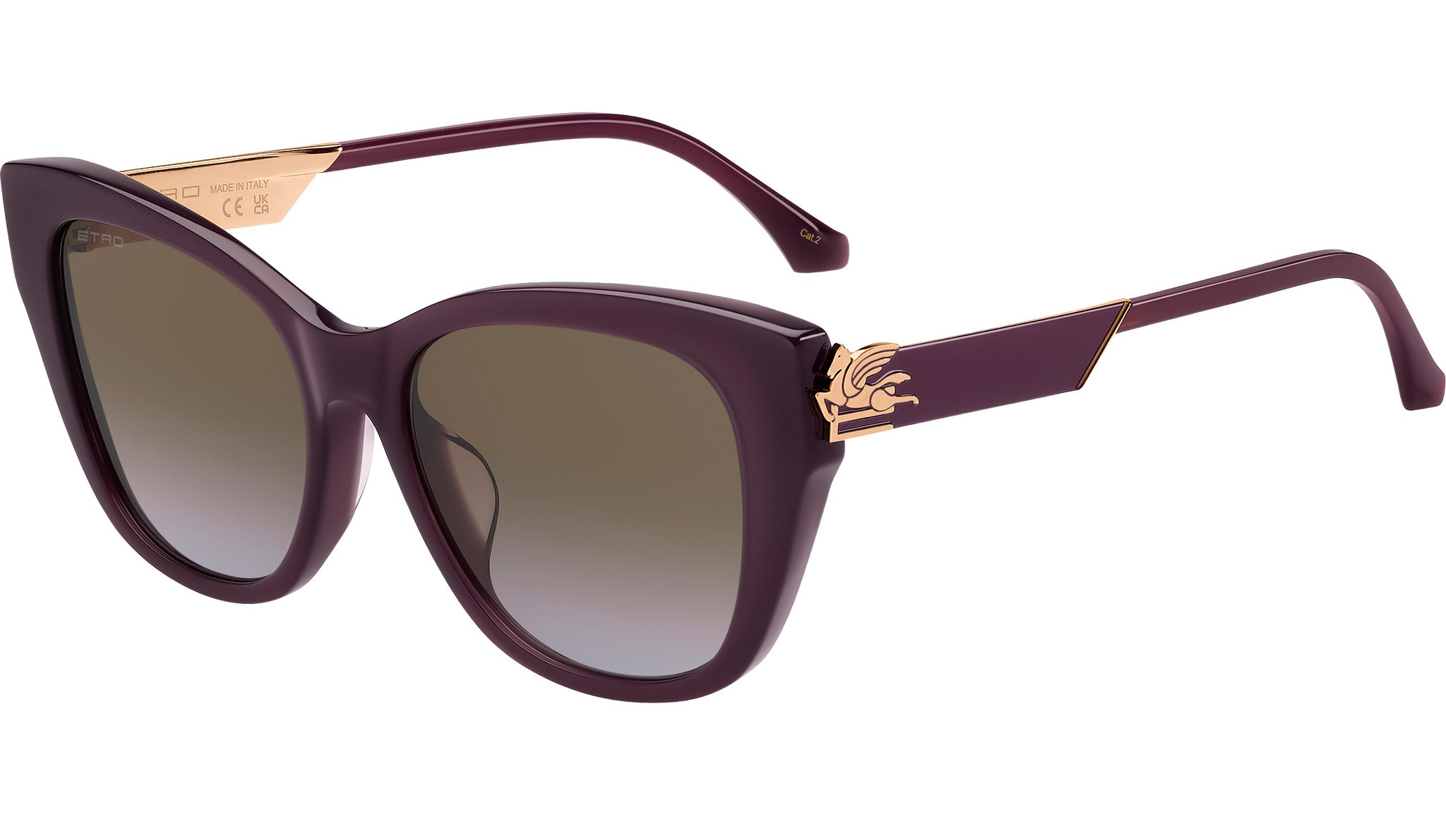 Occhiali da sole Etro 0062/F/S B3V 67 donna con montatura rettangolare in acetato viola e lenti in CR-39 marrone sfumato viola antireflex. Temi mitologici e futuristici si combinano nella collezione eyewear "Bold Pegaso" di ETRO, un omaggio alla figura dell'omonimo cavallo alato, simbolo della Maison. Parte della collezione Asian Fitting, questi occhiali da sole presentano un frontale in acetato smussato e aste in metallo ultra-glamour, con una finitura laccata che ricorda le lavorazioni di gioielleria. I terminali dalla forma iconica e il logo presente sulle lenti colorate completano la montatura con un inconfondibile tocco di eleganza. Linea: Etromania. Codice modello: 207342. Codice colore: B3V 67. Rivenditore autorizzato Etro online. Gli occhiali vengono consegnati con custodia e accessori originali e sono coperti dalla garanzia ufficiale di 12 mesi del produttore.