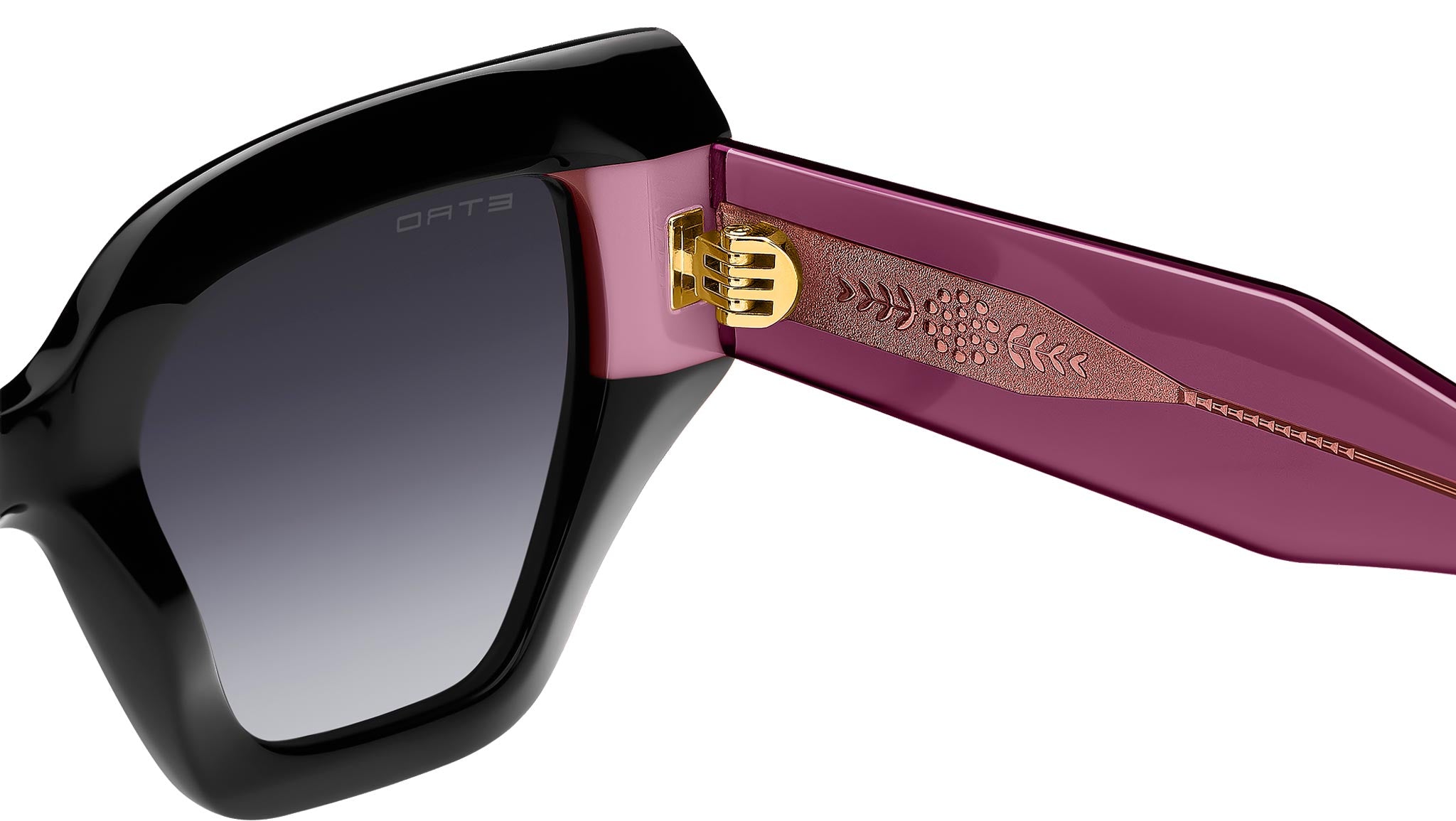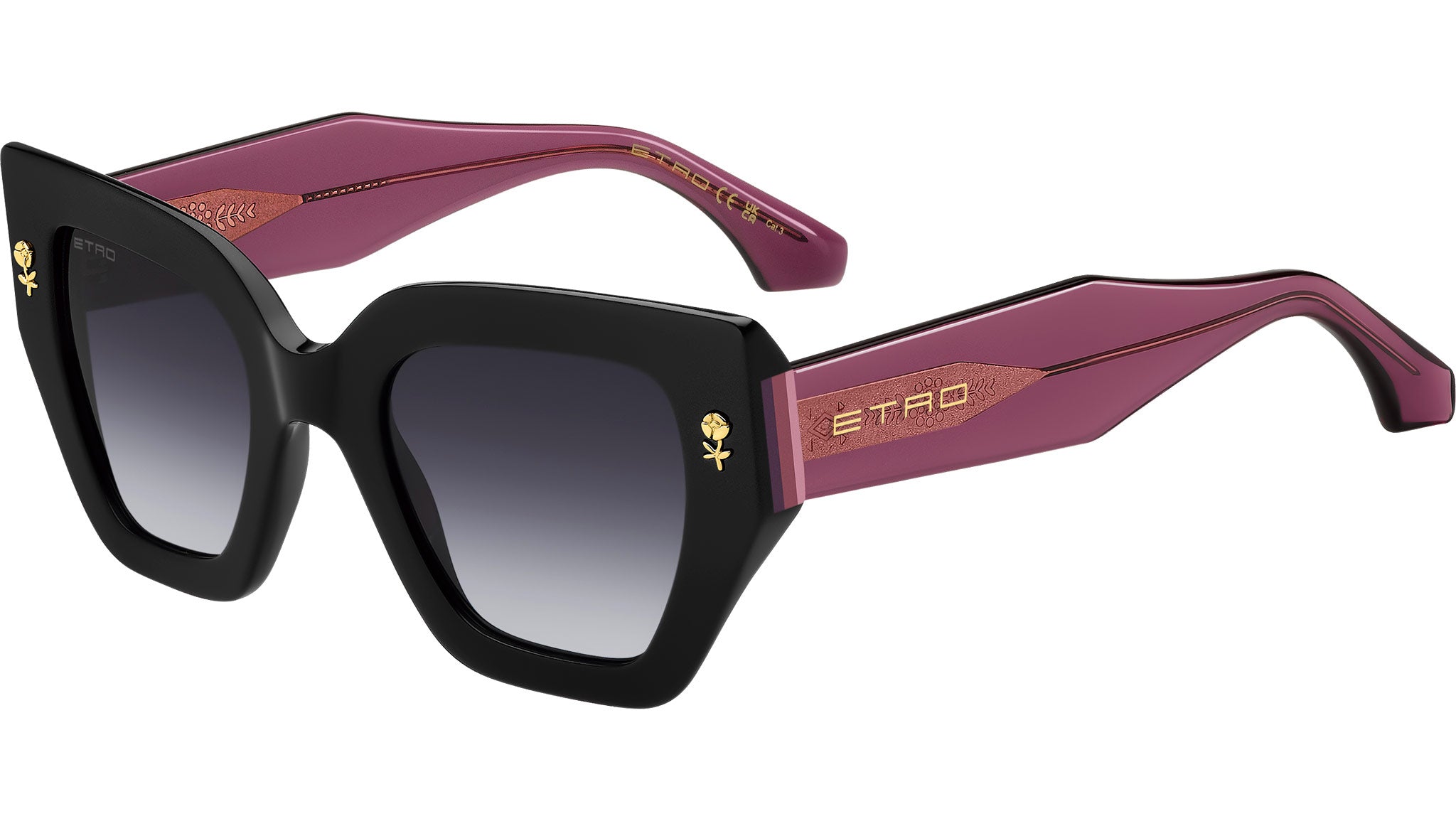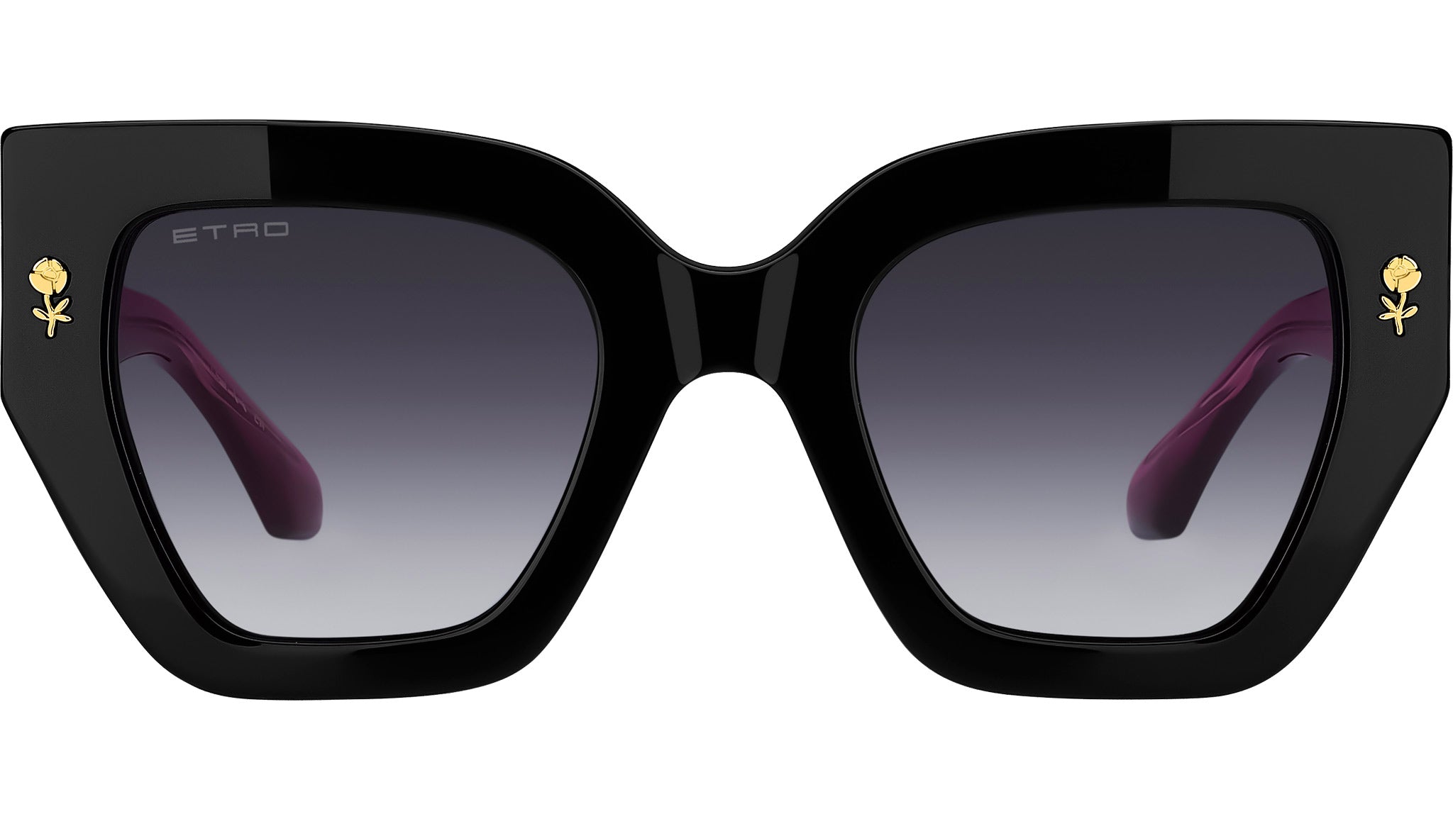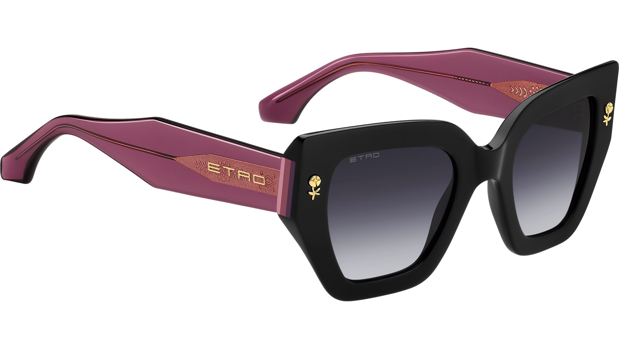 Occhiali da sole Etro 0010/S HK8 9O donna con montatura squadrata in acetato nero viola e lenti in CR-39 grigio scuro sfumato. Un omaggio ai motivi a righe e pattern floreali che contraddistinguono il codici stilistici di ETRO, la collezione eyewear "Colour Stripes" traduce i ricami e le stampe iconiche della Maison in occhiali da vista dall'estetica eclettica e innovativa. La montatura in acetato dai volumi audaci, rifinita con profili smussati, è arricchita da una preziosa decorazione in metallo a forma di fiore e da un inserto a righe multicolore sui lati. L’anima in metallo visibile attraverso le aste trasparenti aggiunge un tocco grafico. Il design dei terminali in acetato richiama la simmetria del logo ETRO. Linea: Etromania. Codice modello: 206848. Codice colore: HK8 9O. Rivenditore autorizzato Etro online. Gli occhiali vengono consegnati con custodia e accessori originali e sono coperti dalla garanzia ufficiale di 12 mesi del produttore.