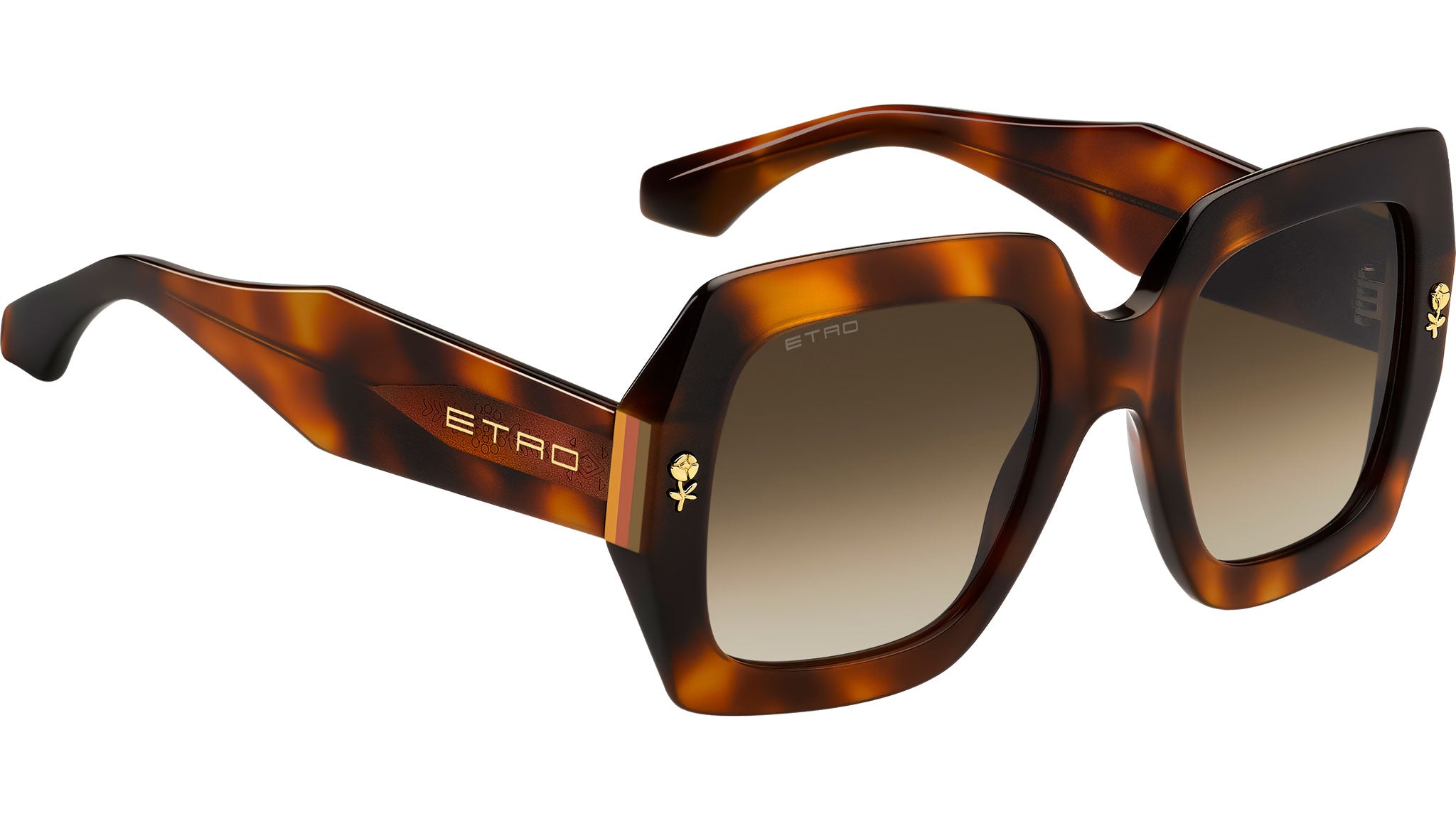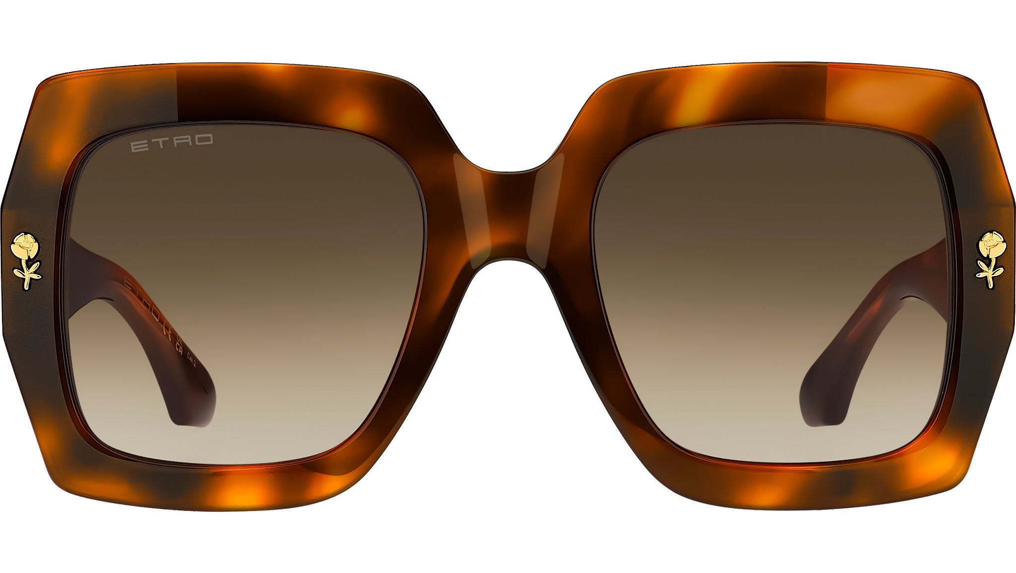 Occhiali da sole Etro 0011/S 05L HA donna con montatura squadrata in acetato avana e lenti in CR-39 marrone sfumato. Un omaggio ai motivi a righe e pattern floreali che contraddistinguono il codici stilistici di ETRO, la collezione eyewear "Colour Stripes" traduce i ricami e le stampe iconiche della Maison in occhiali da vista dall'estetica eclettica e innovativa. La montatura in acetato dai volumi audaci, rifinita con profili smussati, è arricchita da una preziosa decorazione in metallo a forma di fiore e da un inserto a righe multicolore sui lati. L’anima in metallo visibile attraverso le aste trasparenti aggiunge un tocco grafico. Il design dei terminali in acetato richiama la simmetria del logo ETRO. Linea: Etromania. Codice modello: 206849. Codice colore: 05L HA. Rivenditore autorizzato Etro online. Gli occhiali vengono consegnati con custodia e accessori originali e sono coperti dalla garanzia ufficiale di 12 mesi del produttore.