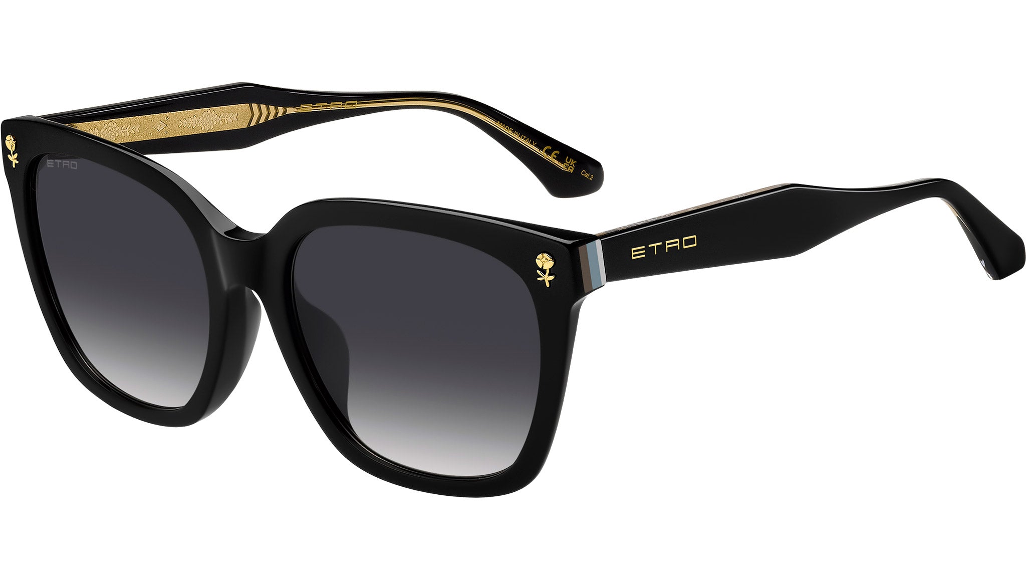 Occhiali da sole Etro 0065/F/S 807 1I donna con montatura squadrata in acetato nero e lenti in CR-39 marrone sol-x. Parte della collezione eyewear Global Fit di ETRO, la linea "Colour Stripes" è una sintesi dei codici stilistici della casa di moda Milanese. Questi eleganti occhiali da sole sono realizzati in acetato leggero dalle linee smussate, accentuate da inserti a righe multicolor e ricchi motivi floreali sui lati, un omaggio alle caratteristiche lavorazioni artigianali del brand. La silhouette morbida e femminile è completata da aste sottili rifinite con il logo ETRO e terminali iconici. Linea: Etromania. Codice modello: 207355. Codice colore: 807 1I. Rivenditore autorizzato Etro online. Gli occhiali vengono consegnati con custodia e accessori originali e sono coperti dalla garanzia ufficiale di 12 mesi del produttore.