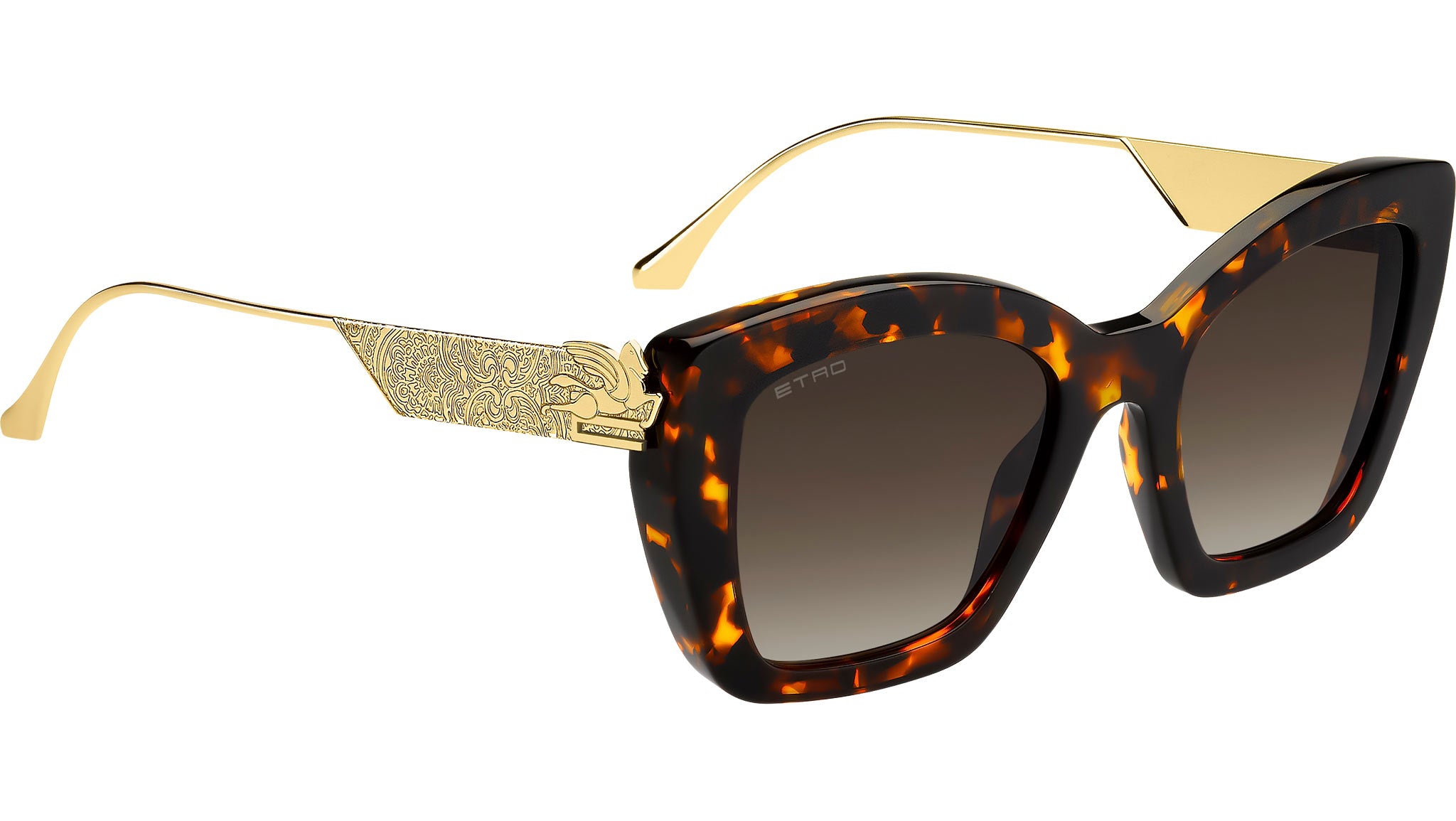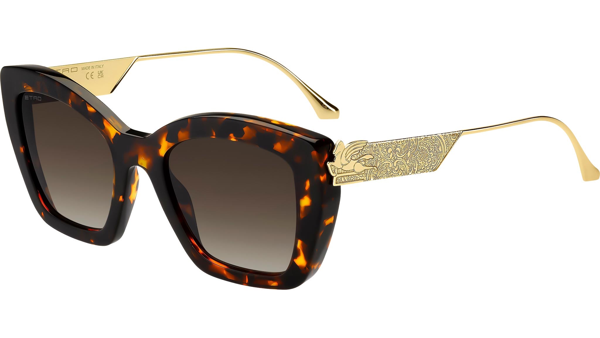 Occhiali da sole Etro 0039/G/S 086 HA donna con montatura butterfly in acetato avana e lenti in CR-39 marrone sfumato. Temi mitologici e futuristici si combinano nella linea di occhiali "Bold Pegaso" di ETRO, un omaggio alla figura dell'omonimo cavallo alato, simbolo della Maison. Destinati a trasformare ogni look in una dichiarazione di stile, questi occhiali da sole presentano un frontale in acetato smussato e aste in metallo dall'appeal glamour: sono decorate con l'intricata fantasia floreale di ETRO e accuratamente laccate per un look prezioso, simile a un gioiello. I terminali dalla forma iconica e il logo presente sulle lenti colorate completano la montatura con un inconfondibile tocco di eleganza. Linea: Etromania. Codice modello: 207312. Codice colore: 086 HA. Rivenditore autorizzato Etro online. Gli occhiali vengono consegnati con custodia e accessori originali e sono coperti dalla garanzia ufficiale di 12 mesi del produttore.
