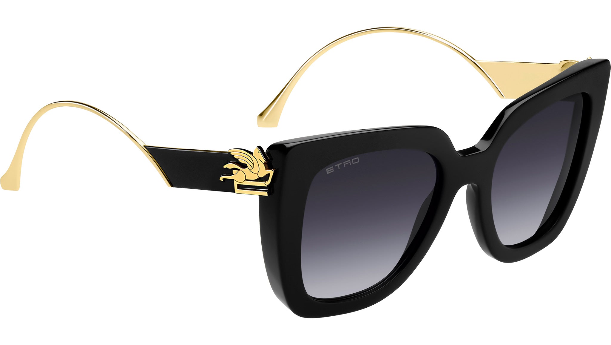 Occhiali da sole Etro 0040/S 807 9O donna con montatura squadrata in acetato nero e lenti in CR-39 grigio scuro sfumato. Temi mitologici e futuristici si combinano nella linea di occhiali "Bold Pegaso" di ETRO, un omaggio alla figura dell'omonimo cavallo alato, simbolo della Maison. Destinati a trasformare ogni look in una dichiarazione di stile, questi occhiali da sole presentano un frontale in acetato smussato e aste in metallo dall'appeal glamour: sono decorate con l'intricata fantasia floreale di ETRO e accuratamente laccate per un look prezioso, simile a un gioiello. I terminali dalla forma iconica e il logo presente sulle lenti colorate completano la montatura con un inconfondibile tocco di eleganza. Linea: Etromania. Codice modello: 207311. Codice colore: 807 9O. Rivenditore autorizzato Etro online. Gli occhiali vengono consegnati con custodia e accessori originali e sono coperti dalla garanzia ufficiale di 12 mesi del produttore.