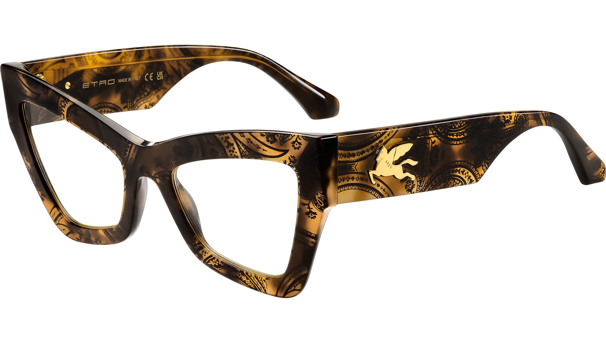 Occhiali da vista Etro 0069 086 donna con montatura butterfly in acetato avana e lenti demo. Una vera dichiarazione di stile, questi occhiali da vista si integrano perfettamente nelle atmosfere dell'ultima sfilata ETRO. Caratterizzate da una forma geometrica decisa, le montature sono realizzate in acetato di alta qualità, disponibile in nero e nel distintivo motivo Paisley. La costruzione delle aste è un dettaglio innovativo e inaspettato, combinando un leggero effetto fresato con una decorazione preziosa in metallo che raffigura il mitico Pegaso. I terminali iconici completano il design di questo eyewear. Linea: Manifesto. Codice modello: 109135. Codice colore: 086. Rivenditore autorizzato Etro online. Gli occhiali vengono consegnati con custodia e accessori originali e sono coperti dalla garanzia ufficiale di 12 mesi del produttore.