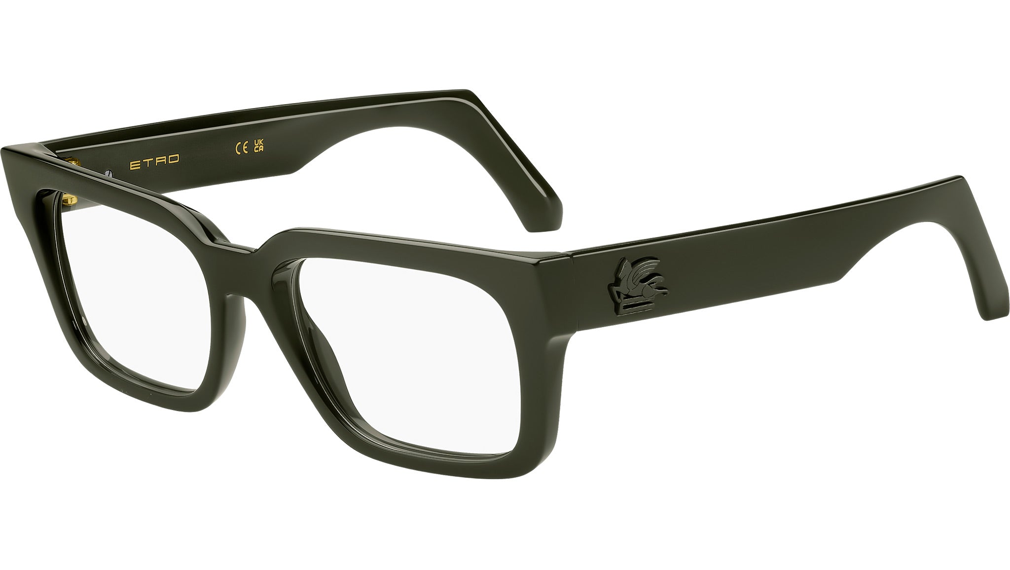 Occhiali da vista Etro 0081 1ED unisex con montatura rettangolare in nylon verde e lenti demo. La collezione eyewear 'Etroscreen' di ETRO reinventa le forme classiche con uno spirito moderno, trasformando i principi estetici del brand in montature da vista audaci e raffinate. Le linee contemporanee incontrano la tradizione in un design che offre un look deciso ma sempre raffinato. Le aste, eleganti e minimali, sono arricchite dal logo dorato e dal simbolo Pegaso, che aggiungono un tocco distintivo, perfetto per chi cerca uno stile unico e riconoscibile. Linea: Tailoring. Codice modello: 109288. Codice colore: 1ED. Rivenditore autorizzato Etro online. Gli occhiali vengono consegnati con custodia e accessori originali e sono coperti dalla garanzia ufficiale di 12 mesi del produttore.