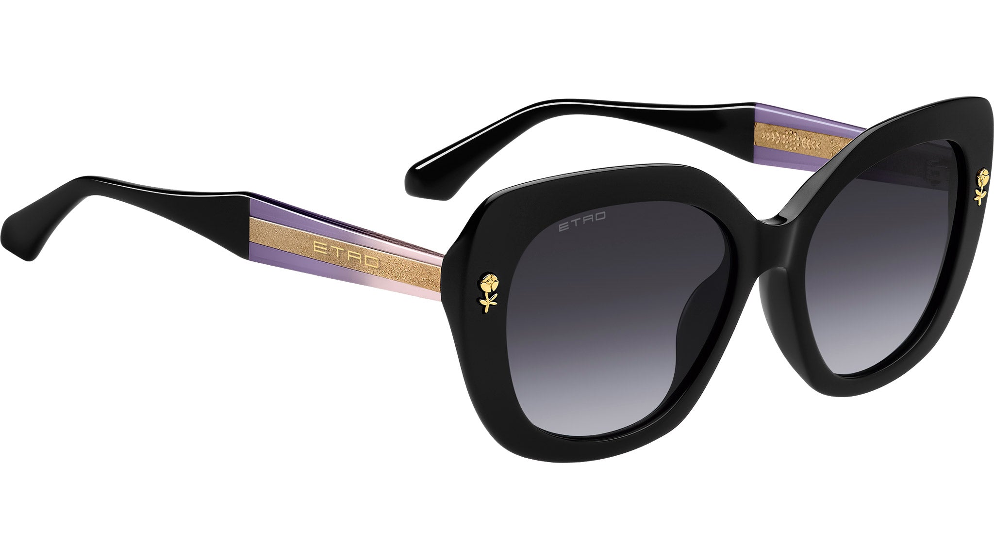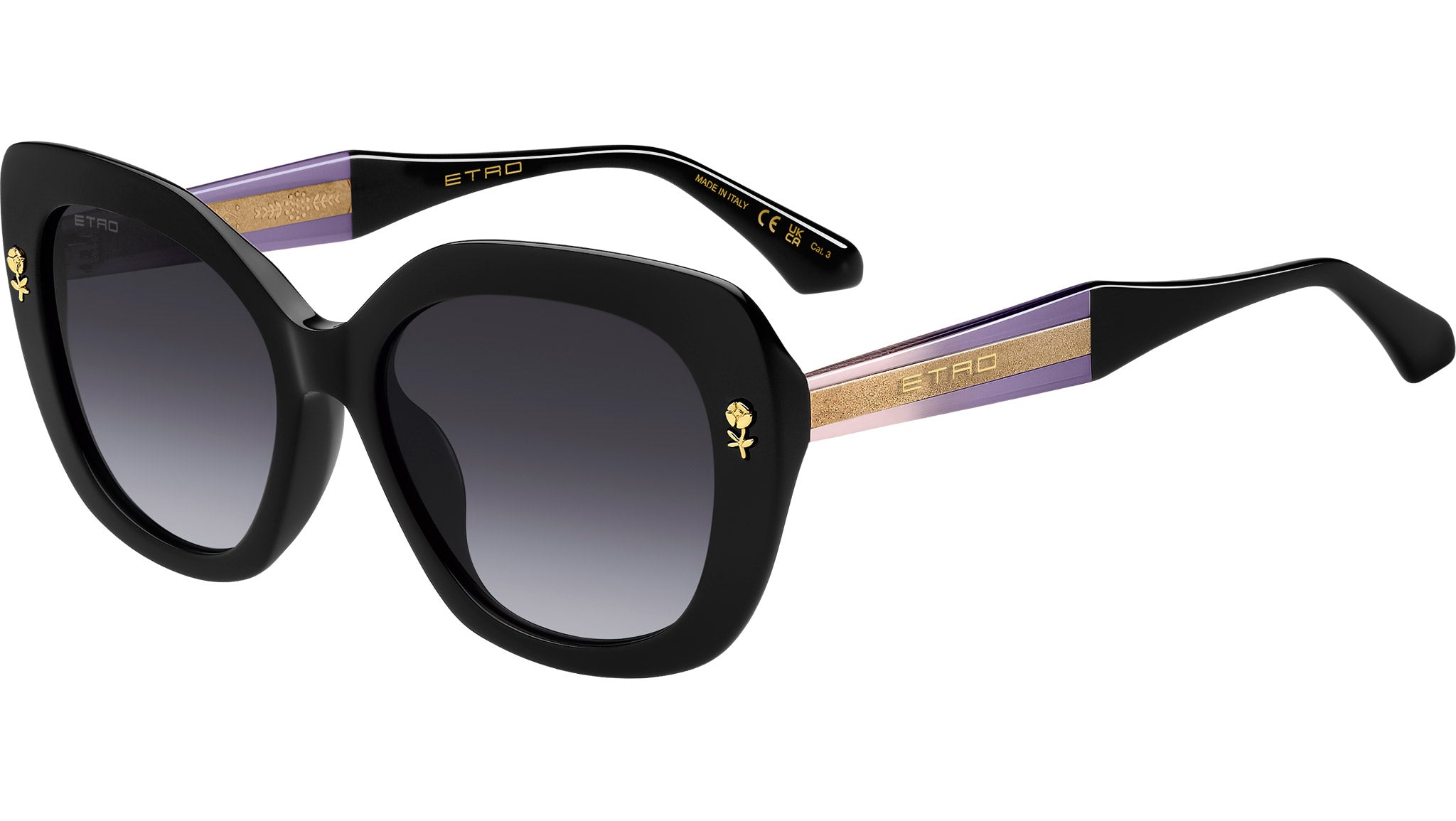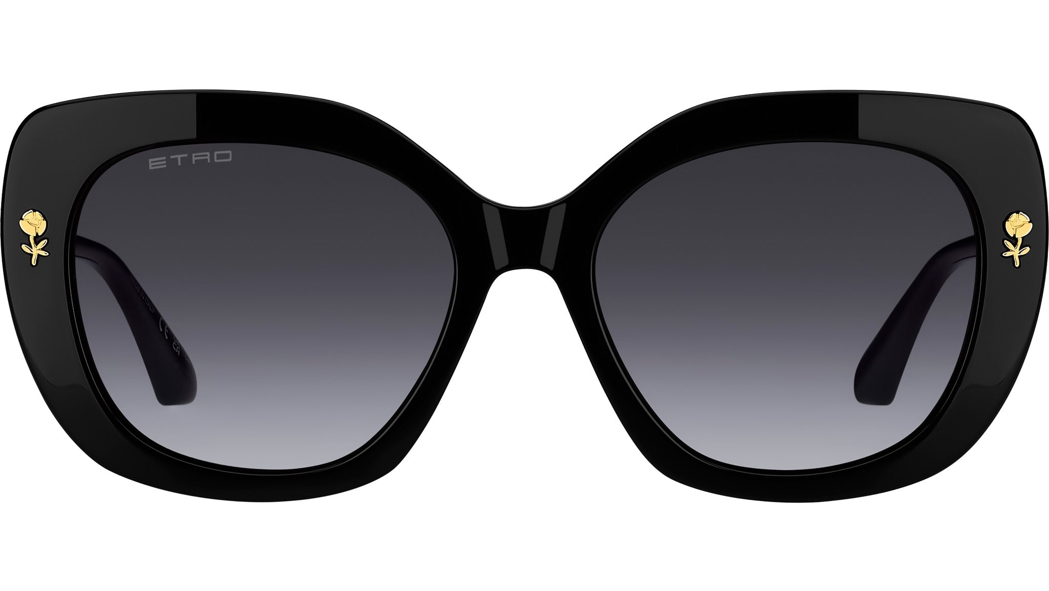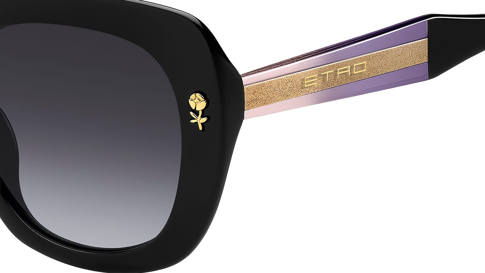Occhiali da sole Etro 0091/F/S 807 9O donna con montatura butterfly in acetato nero e lenti in CR-39 grigio scuro sfumato. Un passo avanti nella storia delle 'Colour Stripes' di ETRO, questi occhiali da sole sono pensati per farsi notare. Il frontale in acetato, smussato per garantire leggerezza, si unisce ad aste geometriche in una palette ombré trasparente, che mette in evidenza il filo metallico grafico. I dettagli floreali, ispirati alle tecniche di ricamo più intricate, il celebre logo ETRO e i terminali iconici completano ogni modello. La palette di colori unisce tonalità classiche e trasparenze intriganti, per un effetto visivo sorprendente. Linea: Etromania. Codice modello: 207828. Codice colore: 807 9O. Rivenditore autorizzato Etro online. Gli occhiali vengono consegnati con custodia e accessori originali e sono coperti dalla garanzia ufficiale di 12 mesi del produttore.