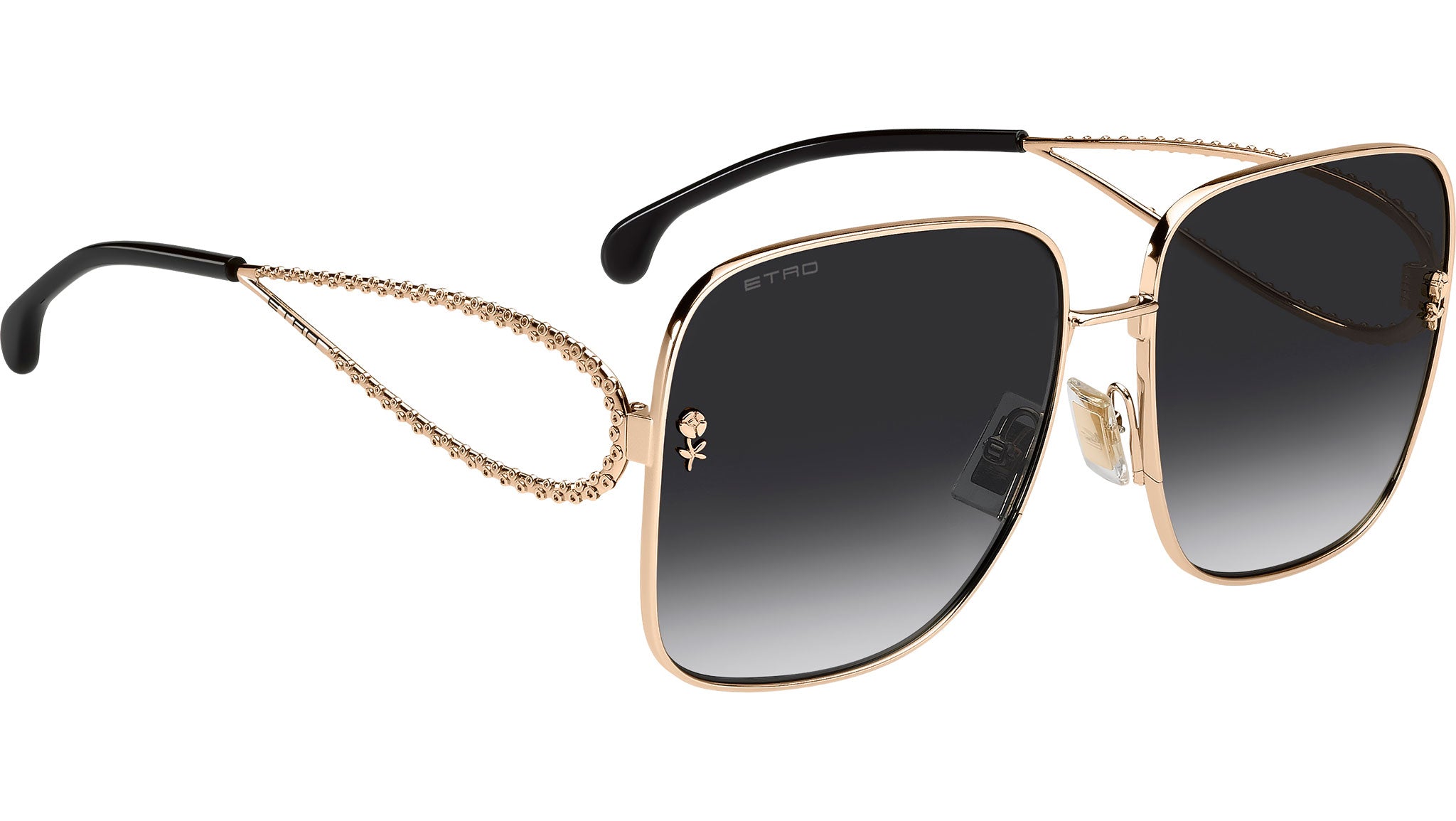 Occhiali da sole Etro 0070/S 000 9O donna con montatura squadrata in metallo oro rosa e lenti in CR-39 grigio scuro sfumato. Un omaggio alla creatività e all'arte, questi occhiali da sole ETRO prendono ispirazione dalla collezione di gioielli del brand. La silhouette in metallo, leggera ed essenziale, è arricchita da aste scultoree lavorate con una tecnica di cesellatura innovativa che dona un effetto tridimensionale. Il motivo Paisley, reinterpretato nelle aste arrotondate, assicura un comfort quotidiano, mentre i dettagli floreali e il logo brillante completano un design che unisce raffinatezza e funzionalità. Linea: Etromania. Codice modello: 207871. Codice colore: 000 9O. Rivenditore autorizzato Etro online. Gli occhiali vengono consegnati con custodia e accessori originali e sono coperti dalla garanzia ufficiale di 12 mesi del produttore.