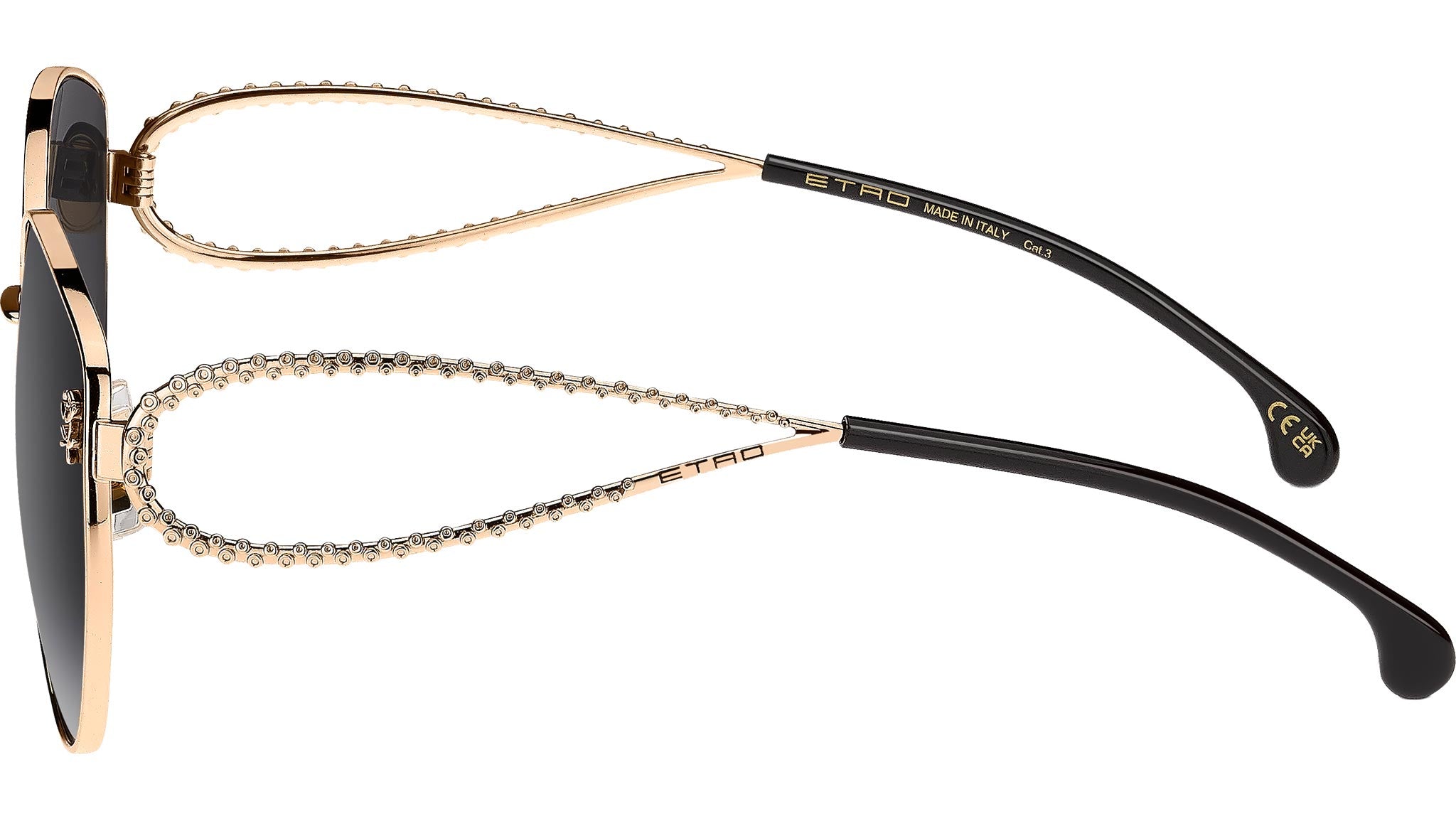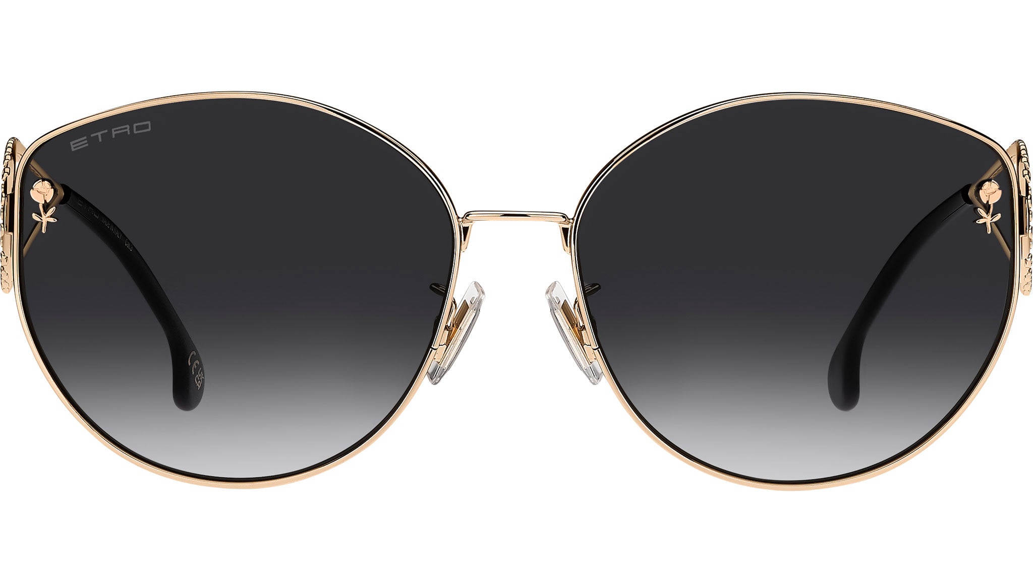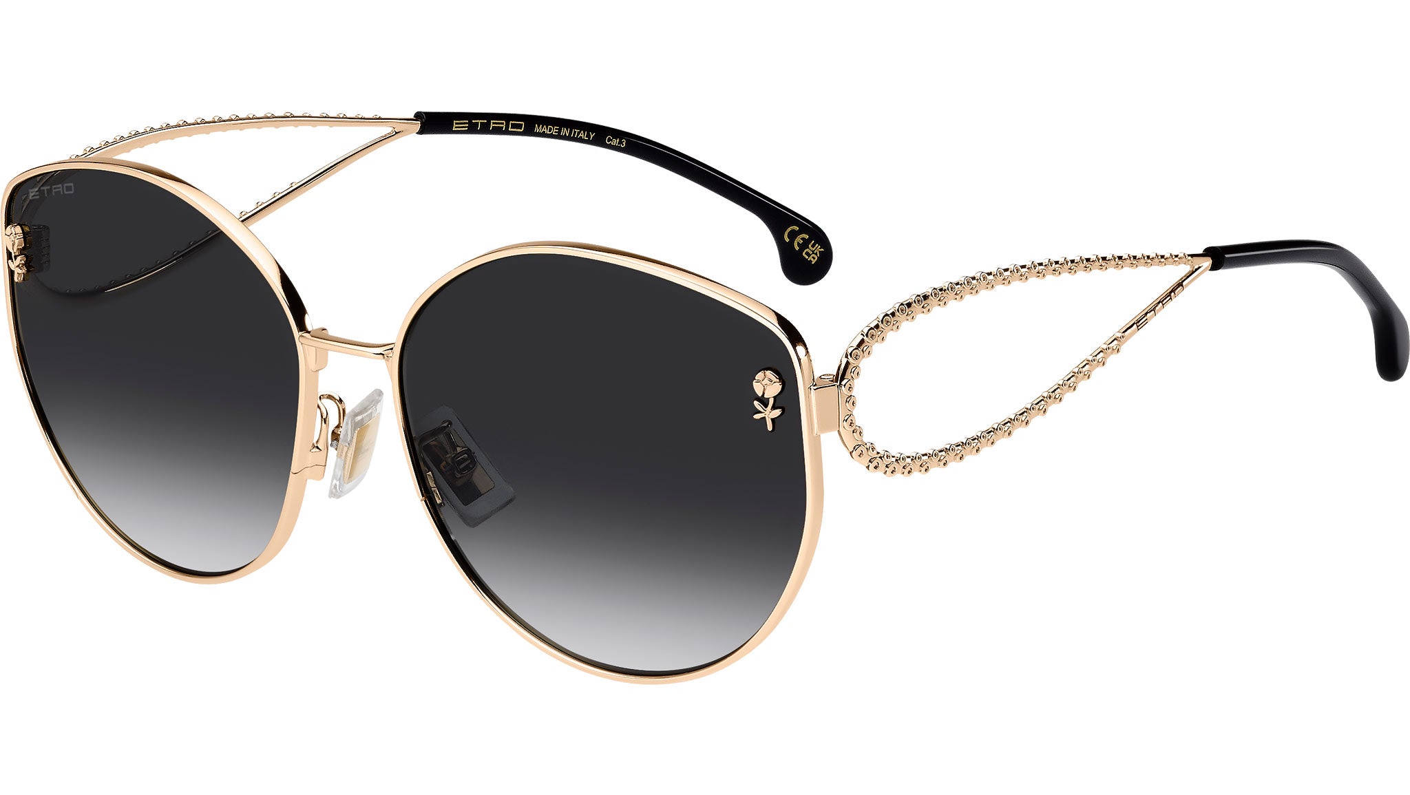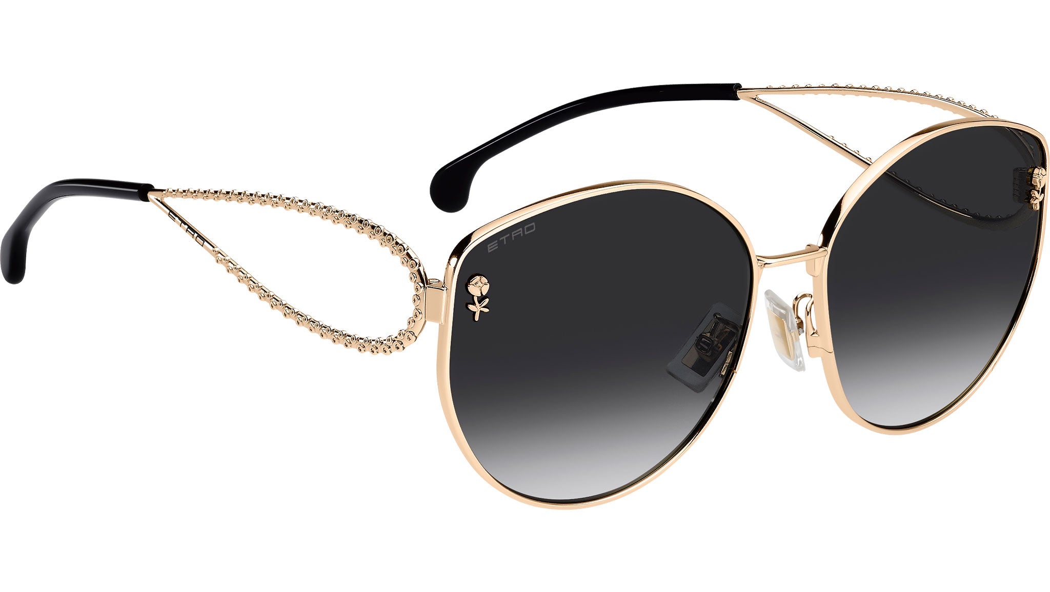 Occhiali da sole Etro 0072/F/S 000 9O donna con montatura cat eye in metallo oro rosa e lenti in CR-39 grigio scuro sfumato. Un omaggio alla creatività e all'arte, questi occhiali da sole ETRO prendono ispirazione dalla collezione di gioielli del brand. La silhouette in metallo, leggera ed essenziale, è arricchita da aste scultoree lavorate con una tecnica di cesellatura innovativa che dona un effetto tridimensionale. Il motivo Paisley, reinterpretato nelle aste arrotondate, assicura un comfort quotidiano, mentre i dettagli floreali e il logo brillante completano un design che unisce raffinatezza e funzionalità. Linea: Etromania. Codice modello: 207872. Codice colore: 000 9O. Rivenditore autorizzato Etro online. Gli occhiali vengono consegnati con custodia e accessori originali e sono coperti dalla garanzia ufficiale di 12 mesi del produttore.
