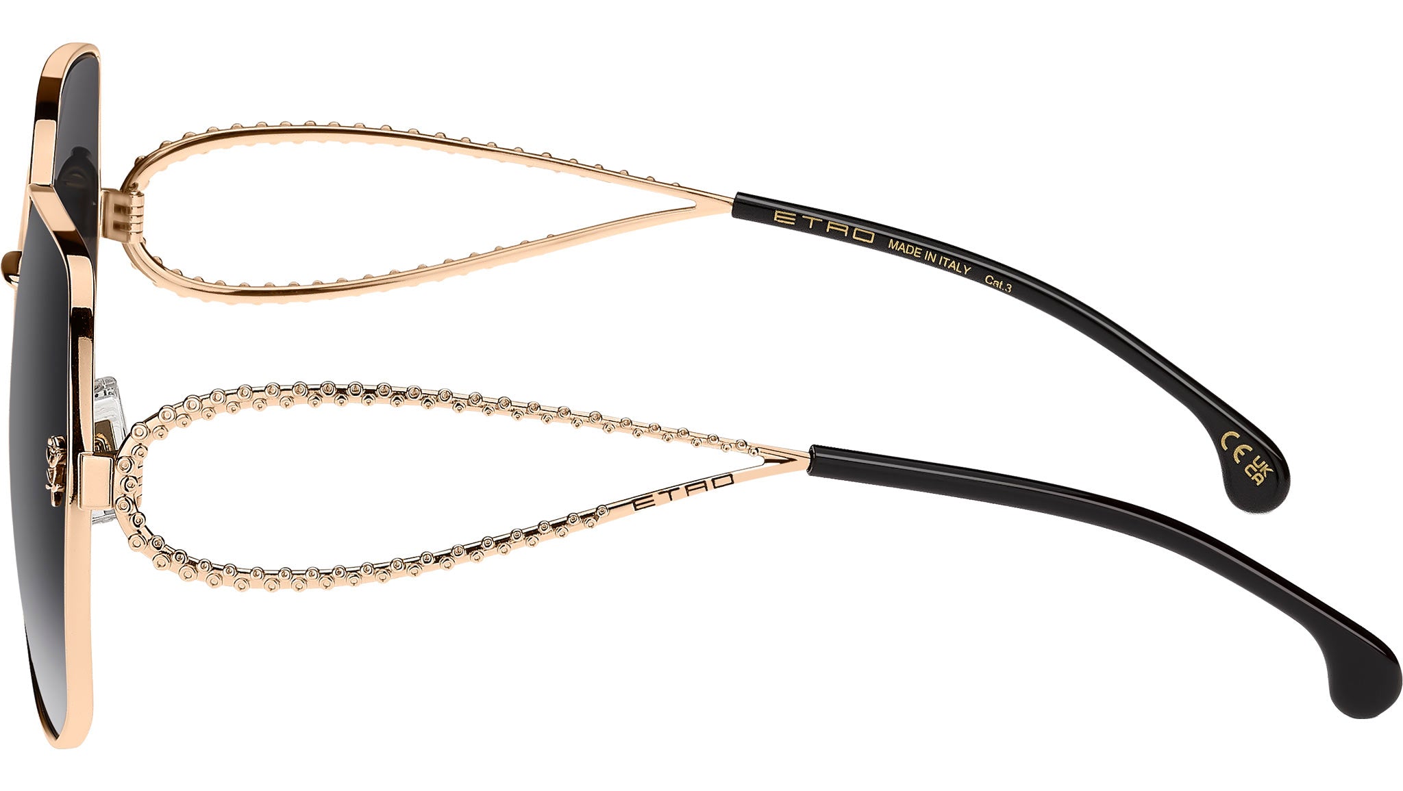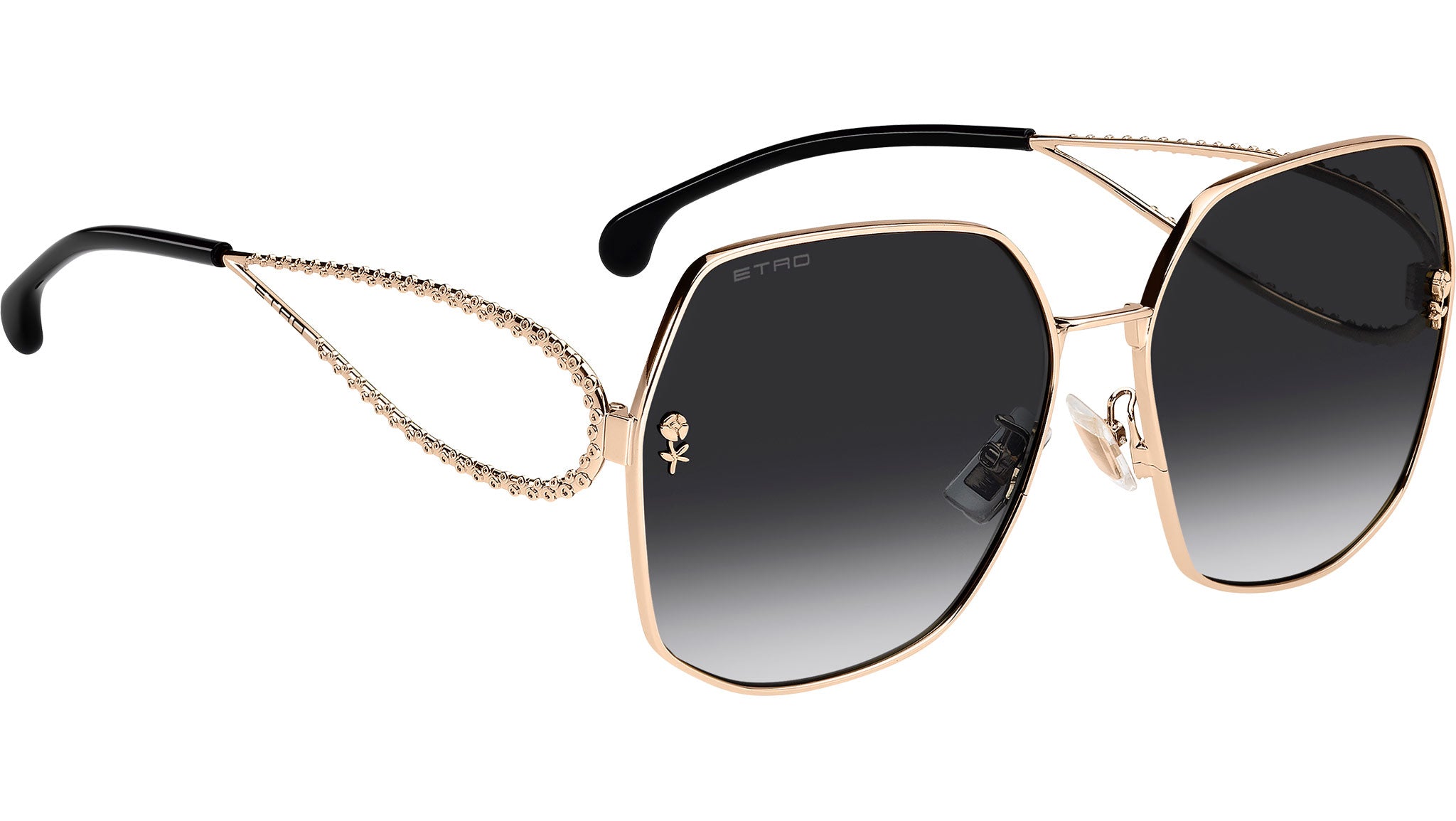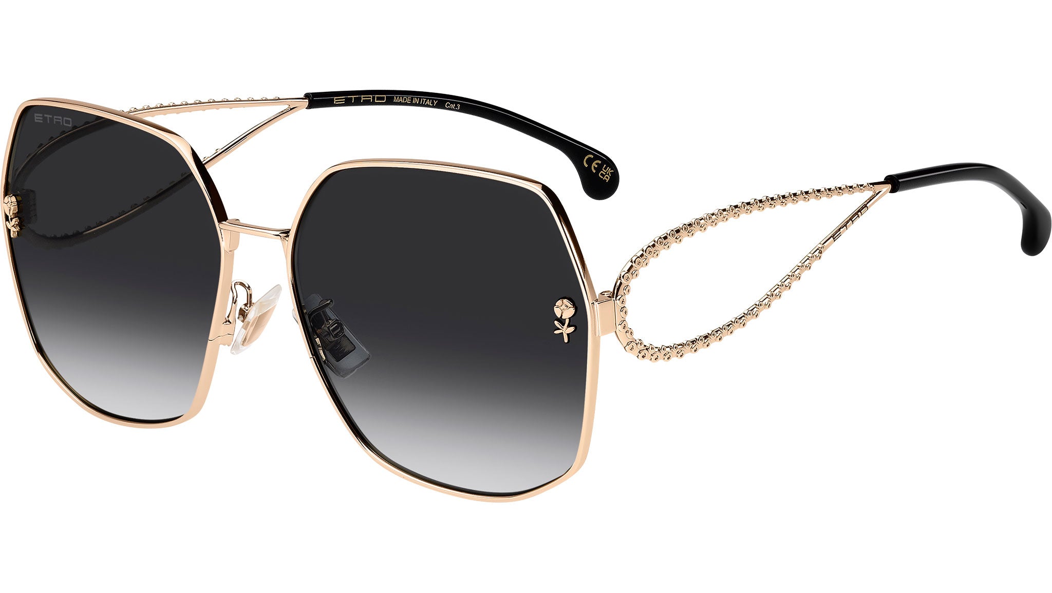 Occhiali da sole Etro 0071/F/S 000 9O donna con montatura squadrata in metallo oro rosa e lenti in CR-39 grigio scuro sfumato. Un omaggio alla creatività e all'arte, questi occhiali da sole ETRO prendono ispirazione dalla collezione di gioielli del brand. La silhouette in metallo, leggera ed essenziale, è arricchita da aste scultoree lavorate con una tecnica di cesellatura innovativa che dona un effetto tridimensionale. Il motivo Paisley, reinterpretato nelle aste arrotondate, assicura un comfort quotidiano, mentre i dettagli floreali e il logo brillante completano un design che unisce raffinatezza e funzionalità. Linea: Etromania. Codice modello: 207873. Codice colore: 000 9O. Rivenditore autorizzato Etro online. Gli occhiali vengono consegnati con custodia e accessori originali e sono coperti dalla garanzia ufficiale di 12 mesi del produttore.