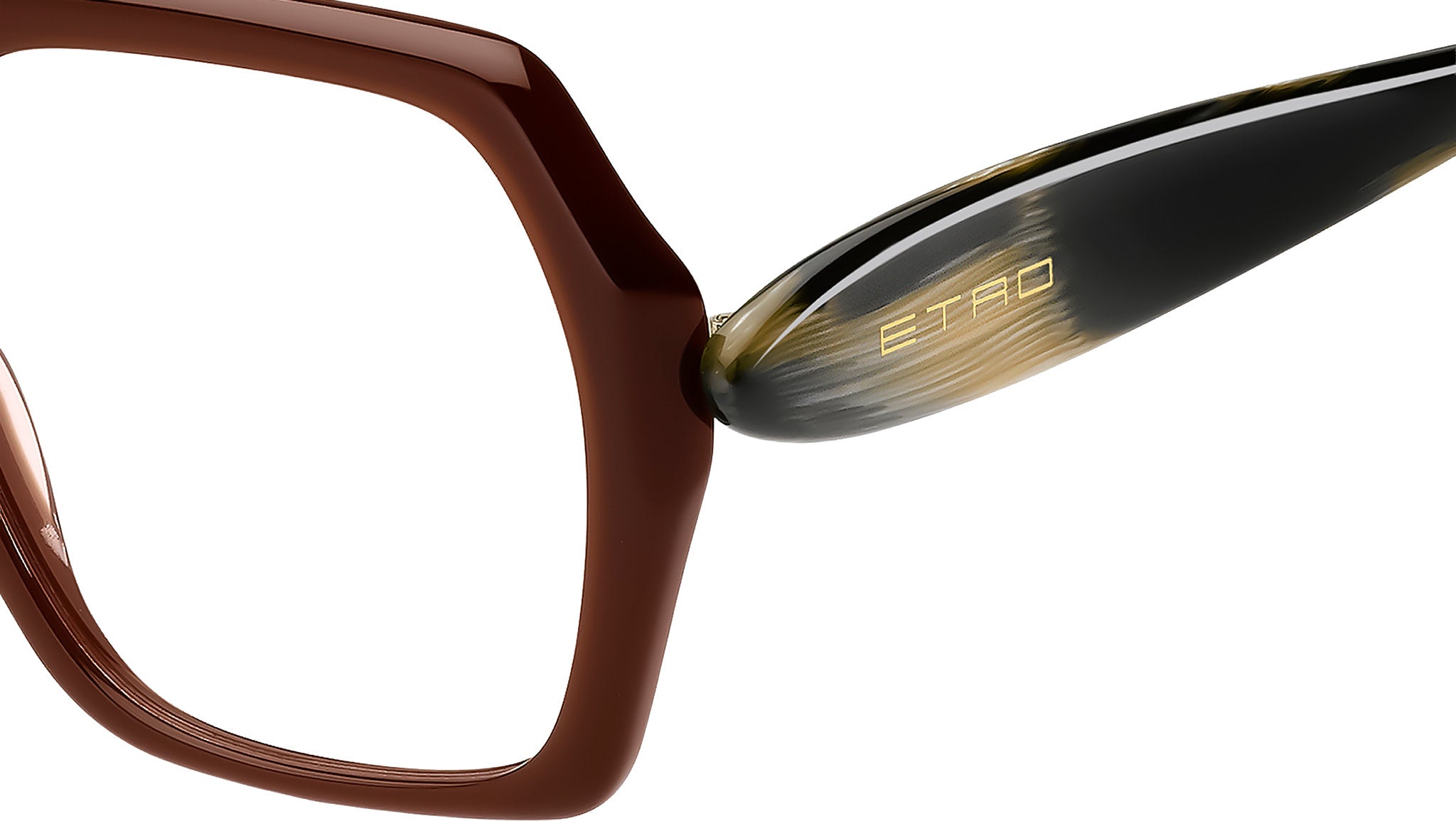Occhiali da vista Etro 0088 09Q donna con montatura squadrata in acetato marrone e lenti demo. Emblema dello spirito ETRO, la collezione eyewear 'Etropaisley' celebra il motivo inconfondibile del brand in tutte le sue forme e varianti cromatiche. Questi occhiali da vista richiamano un'opera d'arte, con una montatura geometrica dalle curve morbide e aste ondulate. L'accento è posto sulle proporzioni delicate e sulle combinazioni audaci di colori, incluse irresistibili varianti bicolore. Ogni modello è arricchito dal logo ETRO e dai terminali distintivi, che riprendono la geometria arrotondata del motivo Paisley. Linea: Etromania. Codice modello: 109290. Codice colore: 09Q. Rivenditore autorizzato Etro online. Gli occhiali vengono consegnati con custodia e accessori originali e sono coperti dalla garanzia ufficiale di 12 mesi del produttore.
